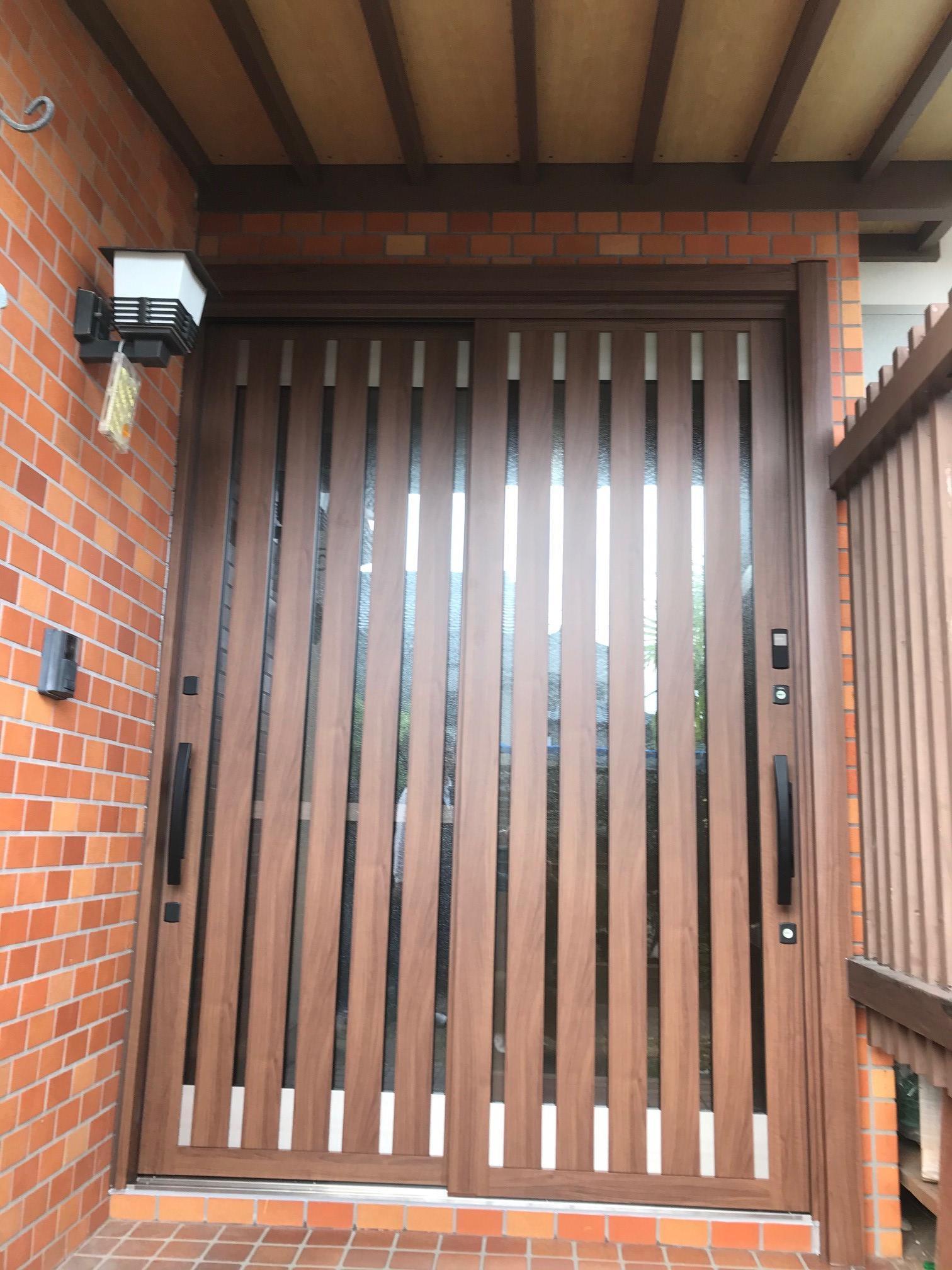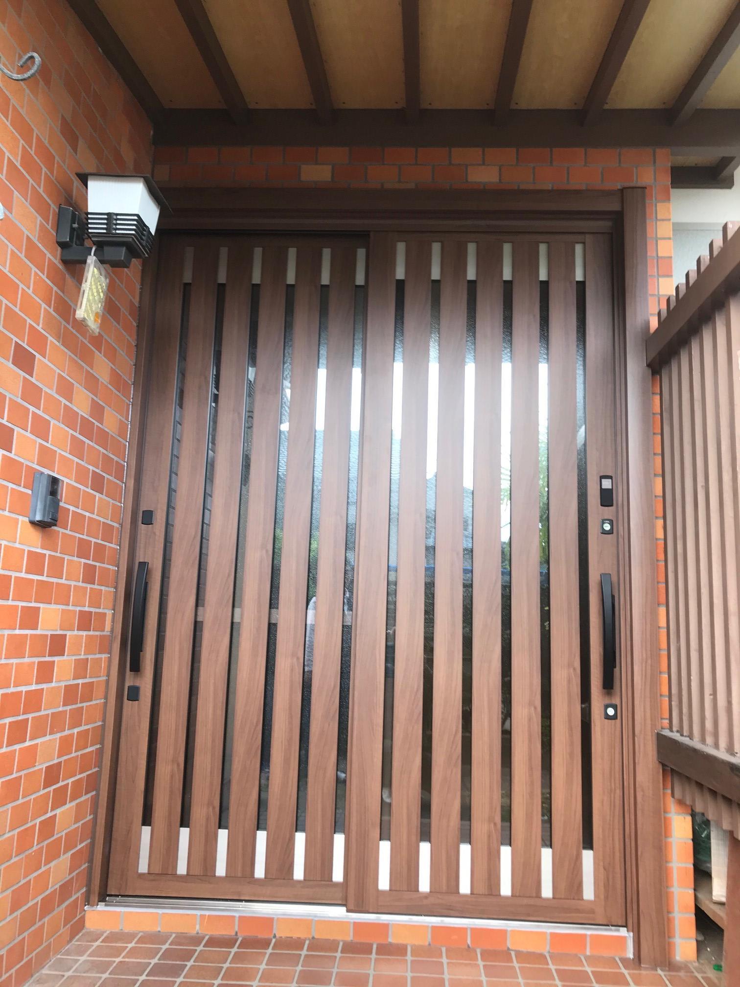 玄関引戸リシェント工事:PG仕様(簡易タッチキー)P15型、クリエモカ色