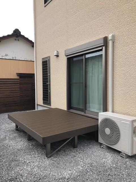門扉:アルシャインHG片開(カラー:シャイングレー) 人工木デッキ:レストステージ(W1.5間×D6尺:ロング束柱)