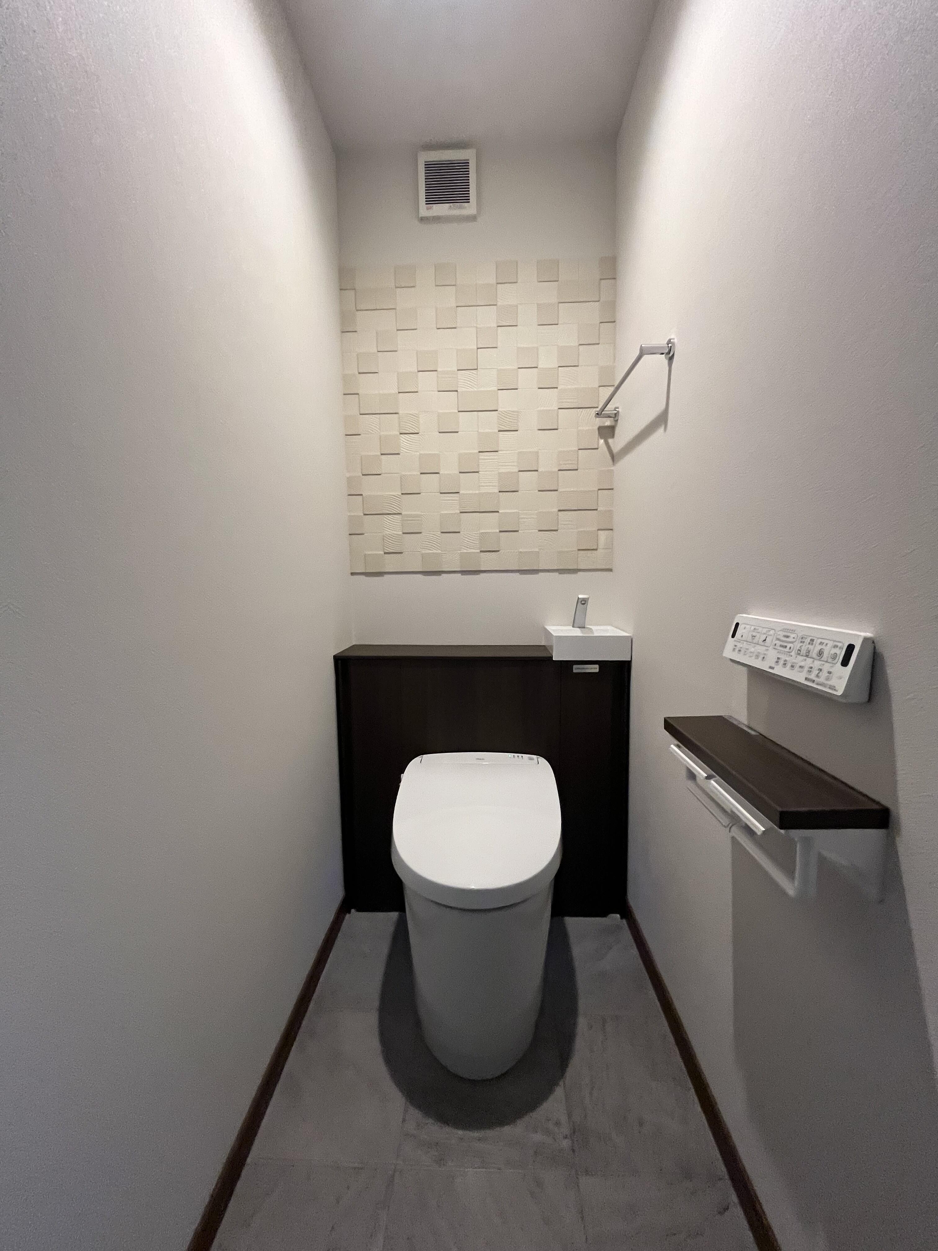 システムキッチン:シエラS システムバスルーム:リノビオV トイレ:Jフィット(手洗い付き) エコカラット施工:パールマスクⅡ 洗面化粧台:クレヴィ 内窓:インプラス フロアタイル施工 クロス貼替