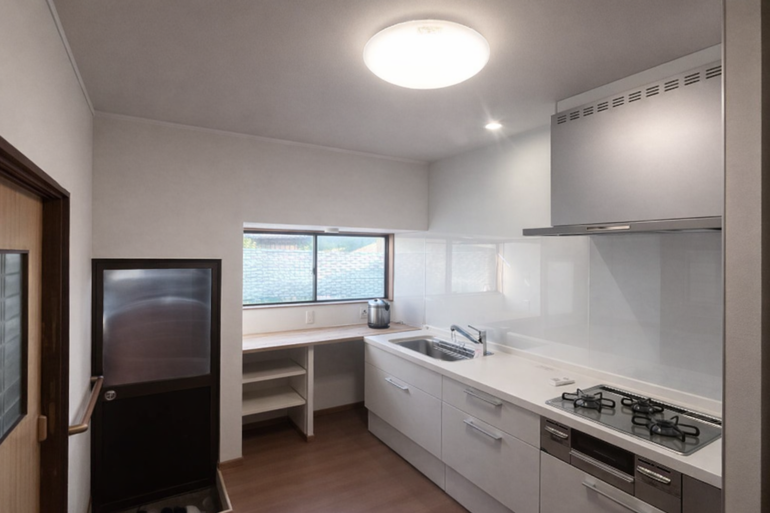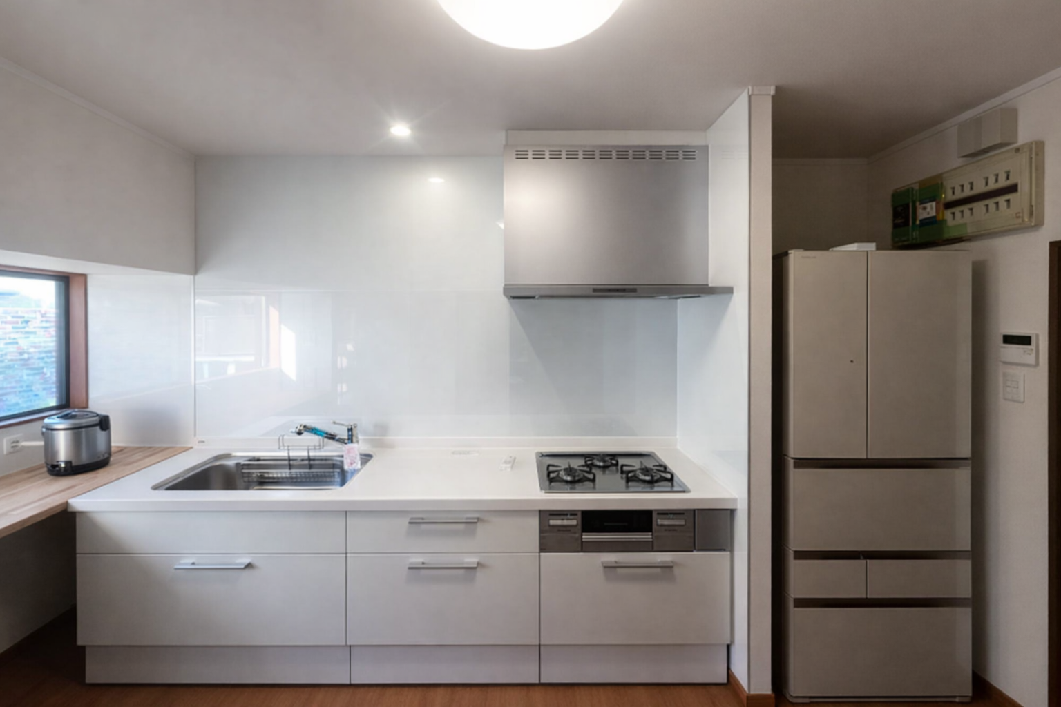 カラーに白を採用したことで、張り替えた壁紙とも調和がとれ、キッチン全体が明るくスタイリッシュな印象に仕上がっています。