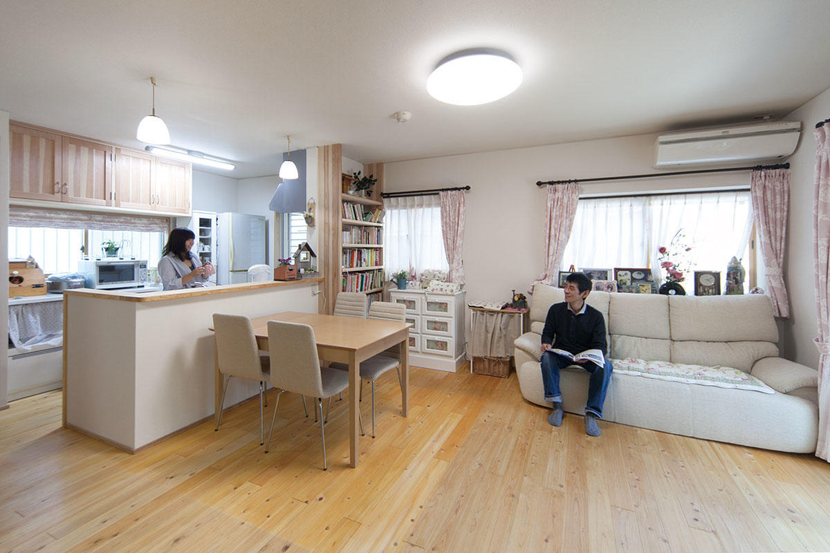 はじめは母の部屋の増築と床の張り替え、それと、収納を増やしたいとご相談。最終的には、キッチン、お風呂、トイレなどの水廻り、ペアガラスやエコキュートの省エネリフォームもリフォームし開放的のある家族が集まる空間になりました。