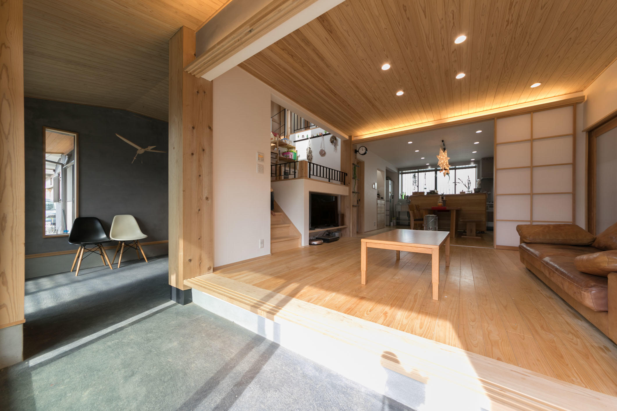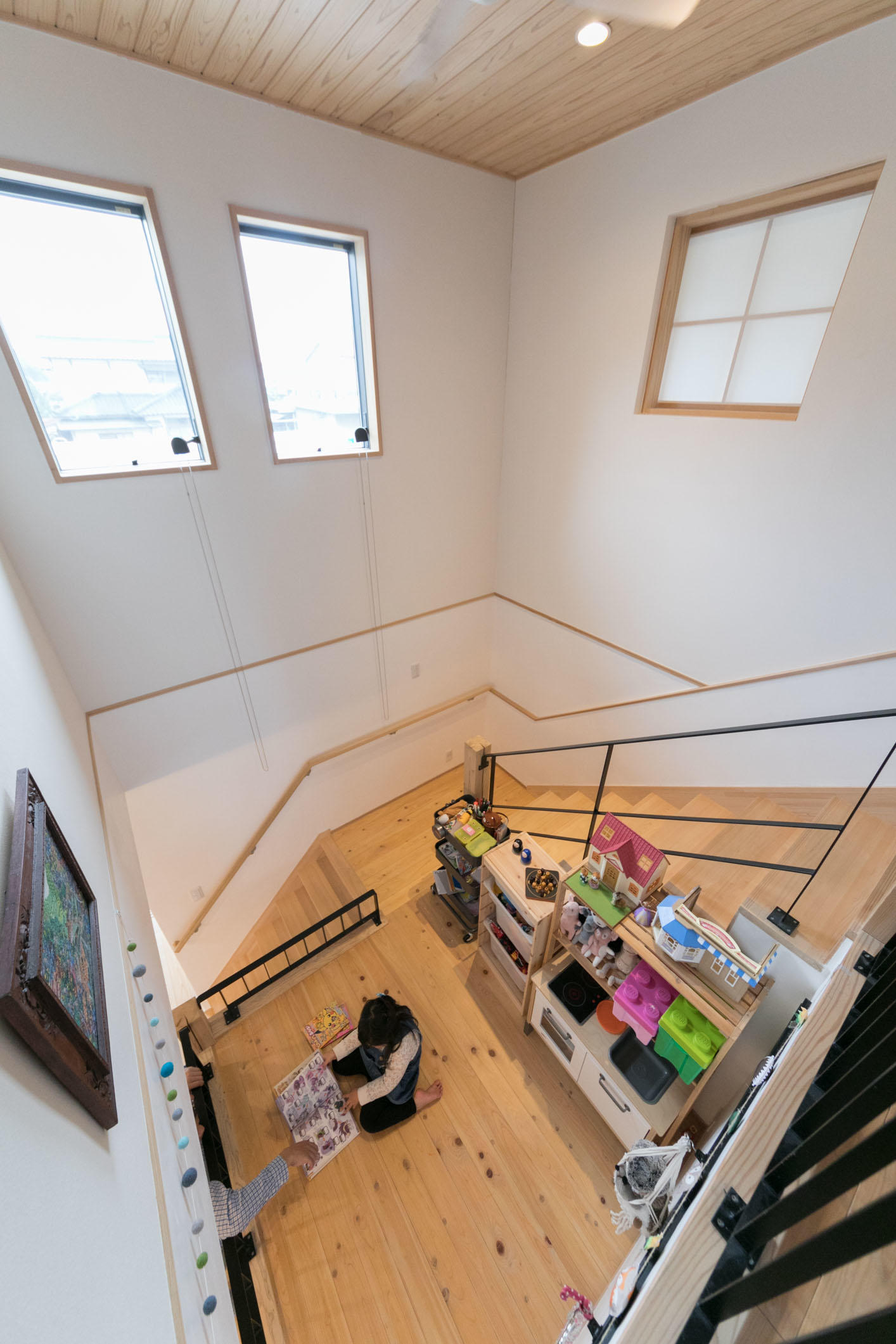 中二階の吹き抜けを作り子供たちに楽しく家族を見渡せる空間