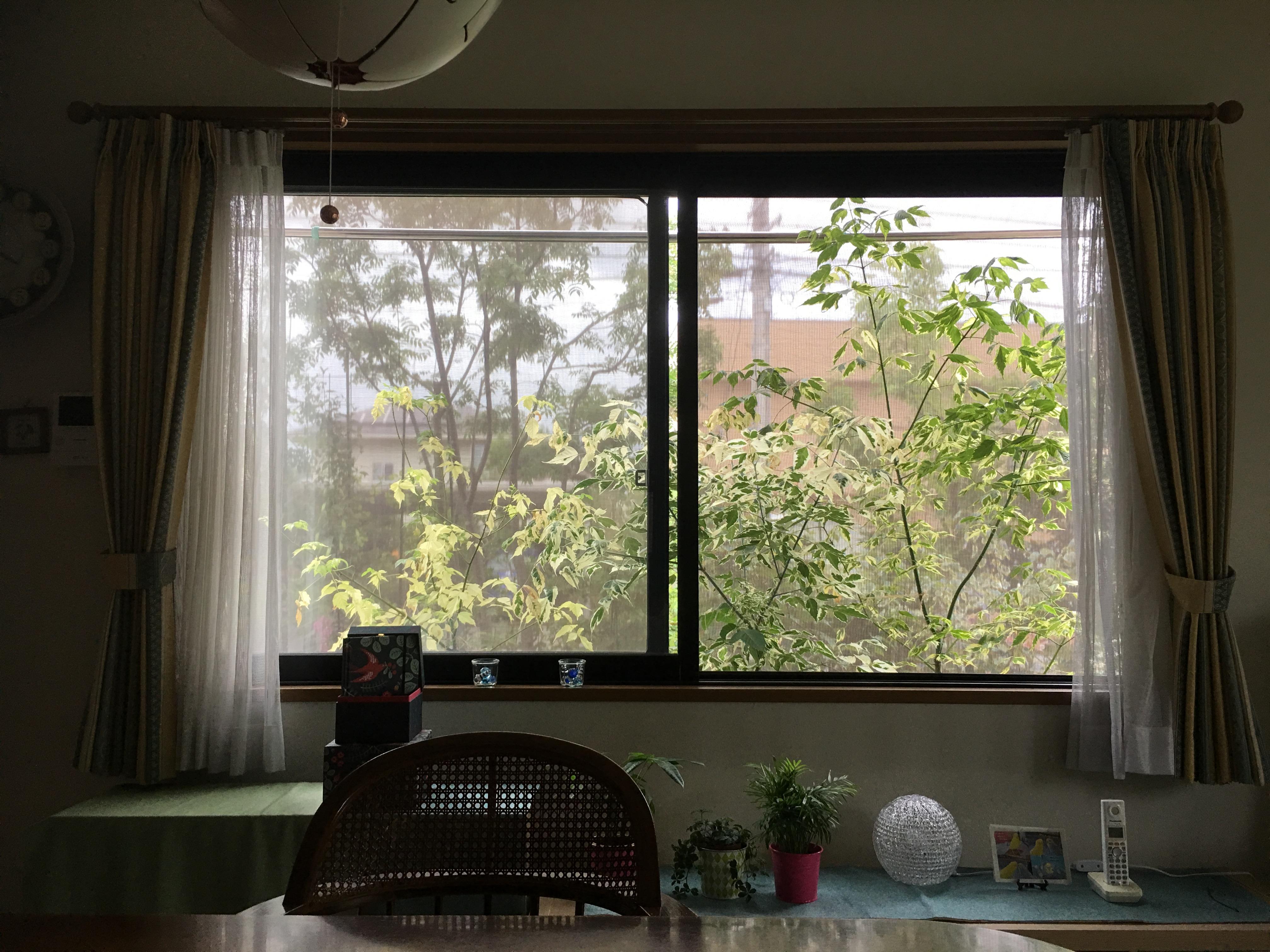 日差しを遮ってくれるので部屋の温度に違いが出た。 光が入ると木々がキレイに輝くので嬉しさ倍増。 クーラーをつけない生活なので、より快適に過ごせるようになった。
