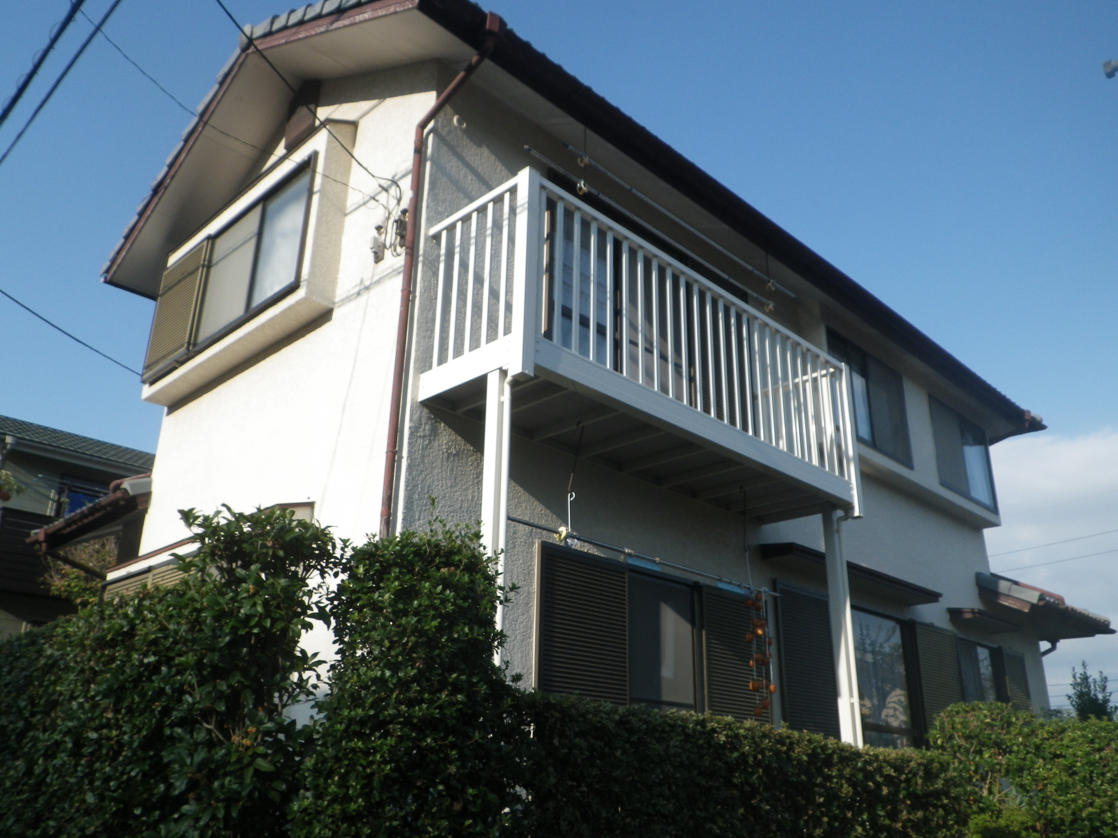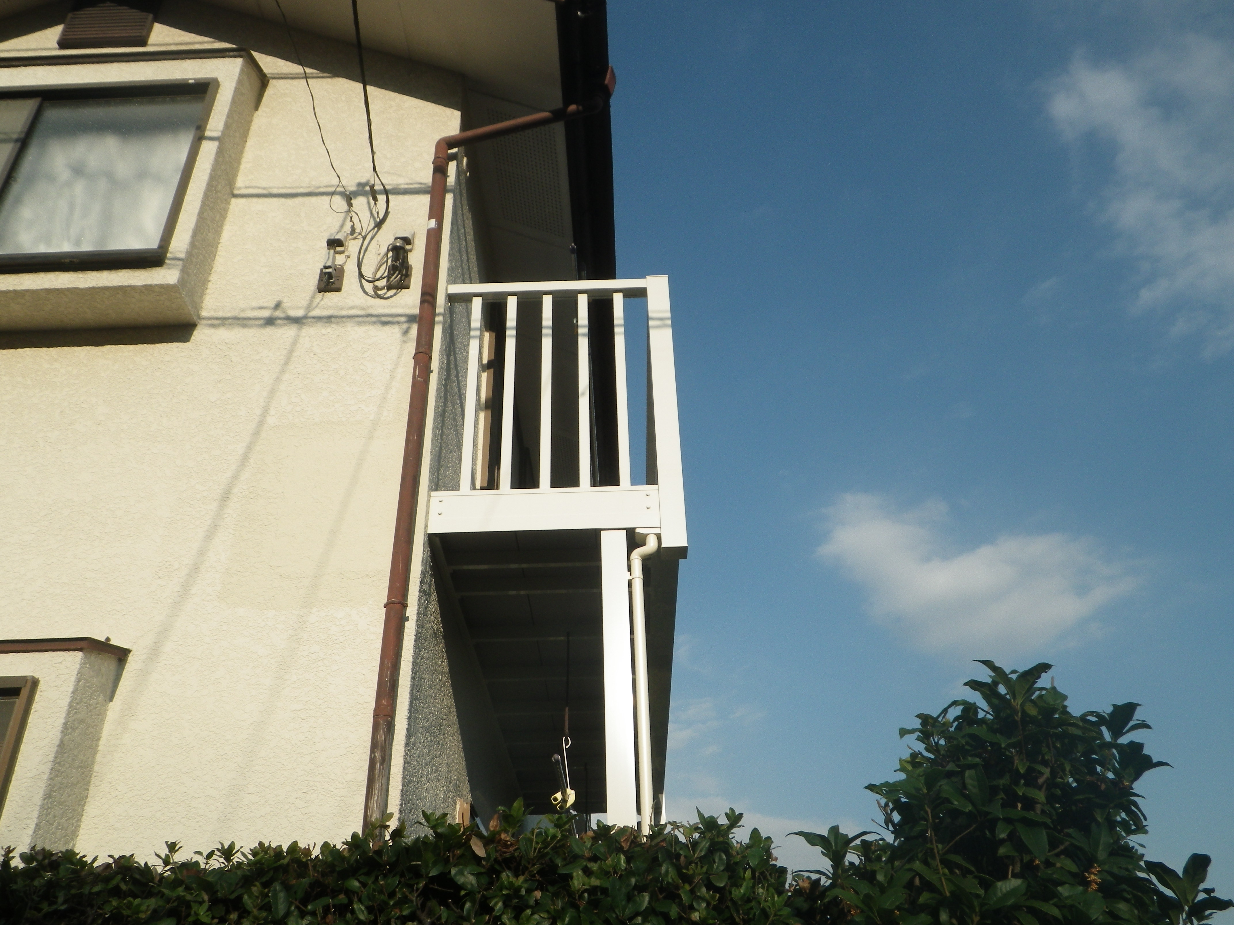 老朽化したベランダ。前面には亀裂が入っていて、いつ崩れてもおかしくない、非常に危険な状態でした。 既存のベランダを壁から切り離し、新たにアルミ製のベランダを設置しました。 これで安心して洗濯物が干せるようになりました。