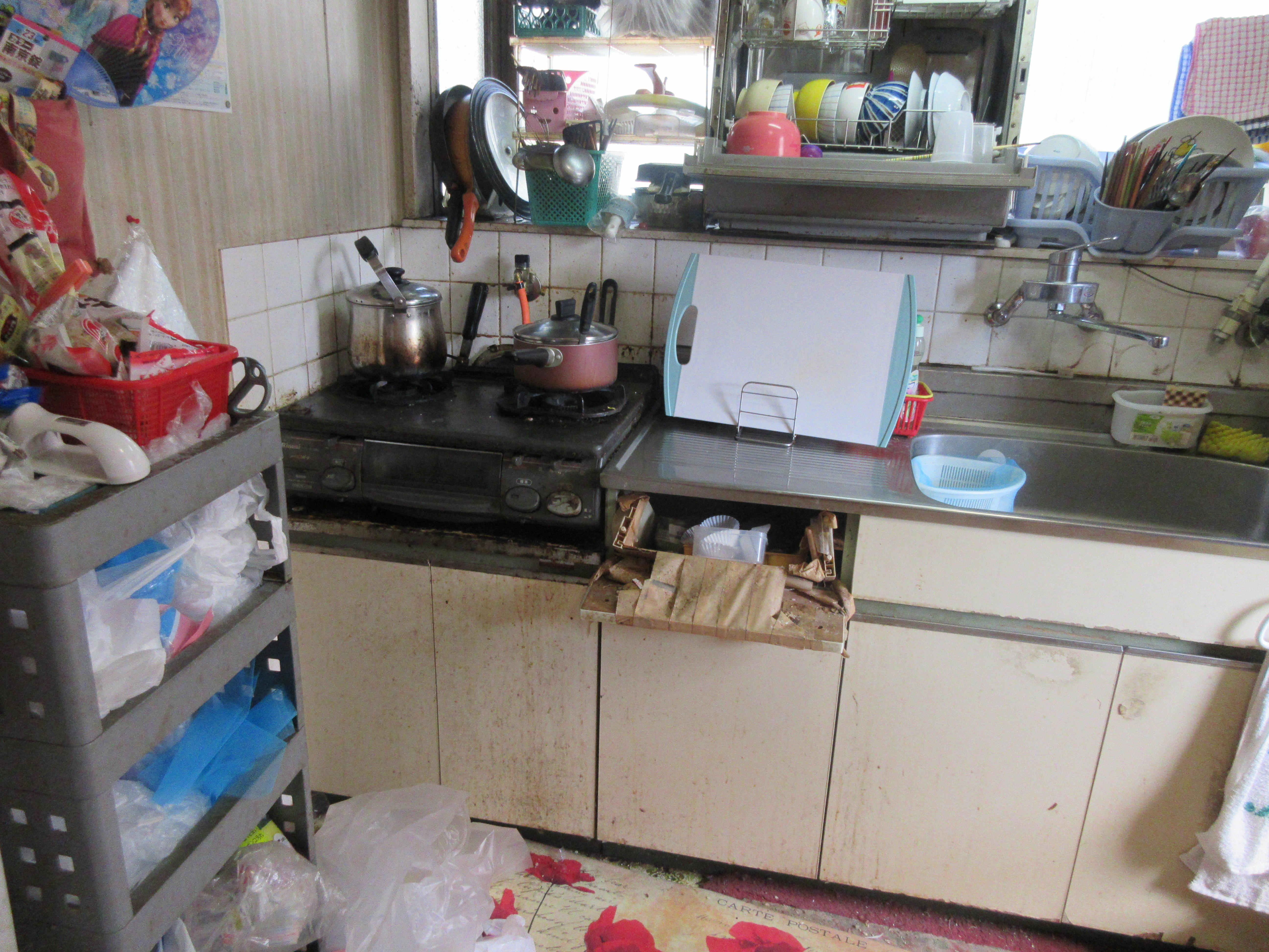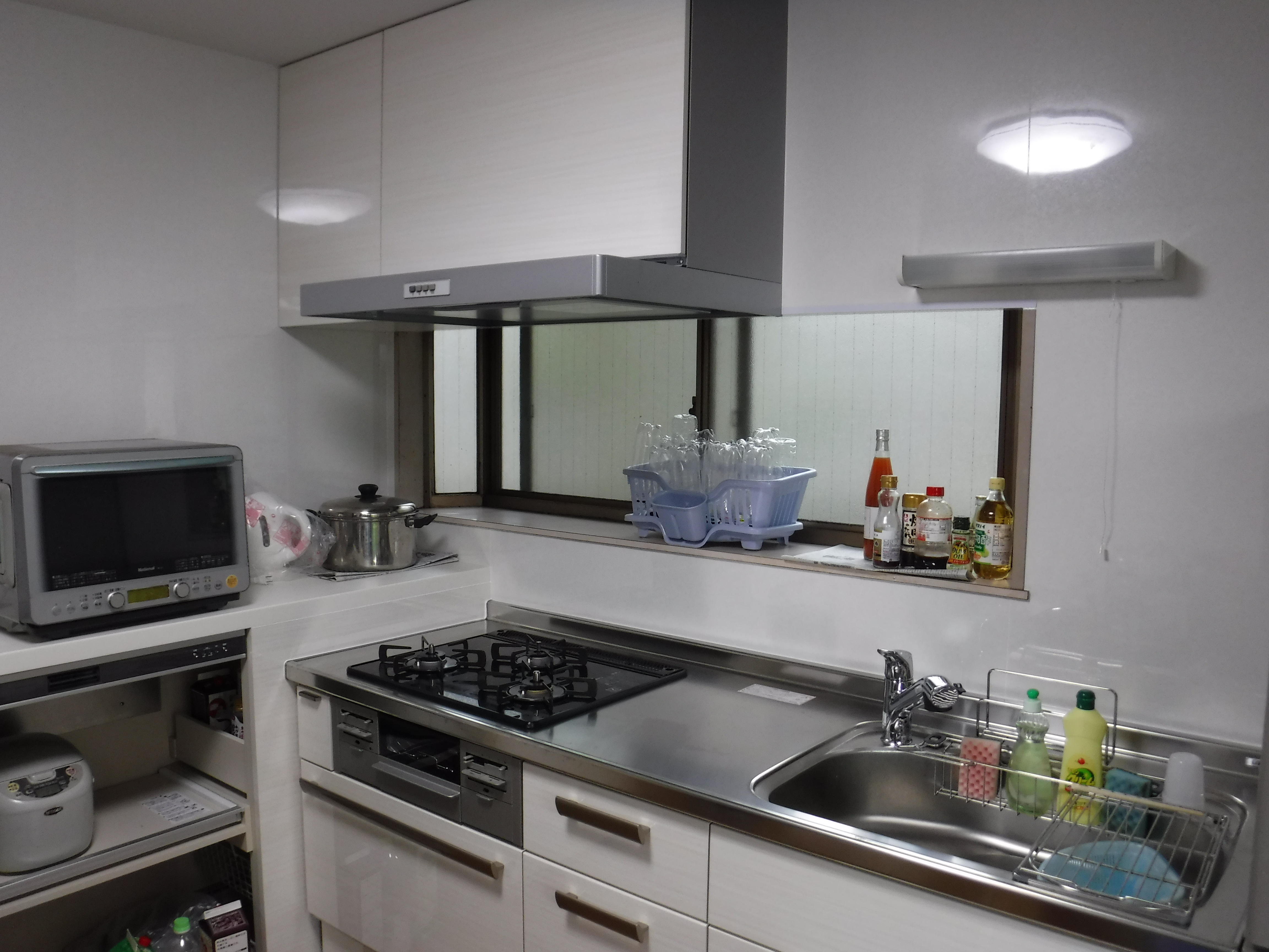 老朽化の進んだキッチンを交換し、スペースを最大限に使えるよう、L型に収納を配置。 大家族には決して広いと言えないキッチンも、工夫しだいでこんなに使いやすくなります。