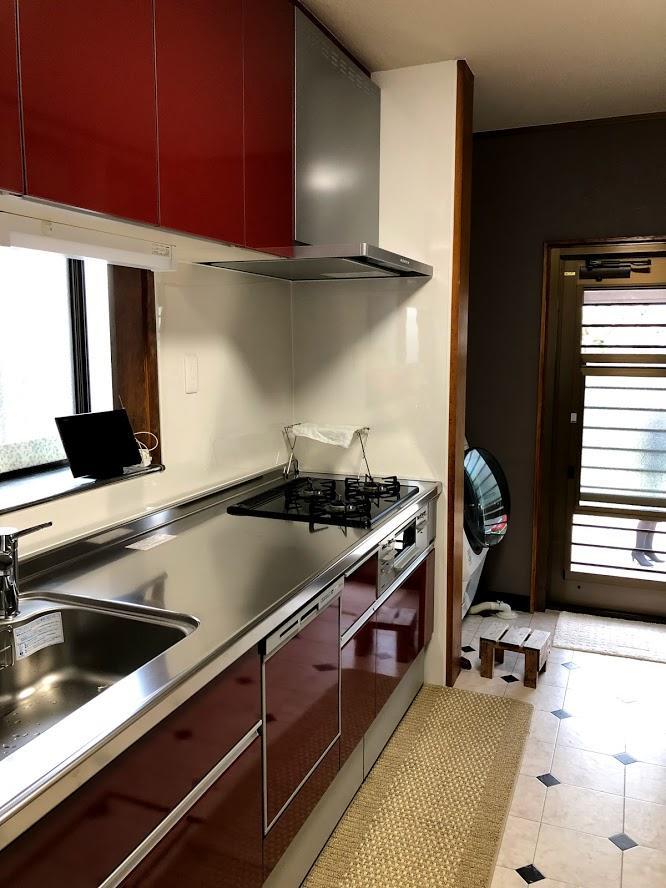 ただ食事の用意をするスペースだったのが、思わず足を運びたくなる空間へと生まれ変わりました。奥様お好みの色合いへと変わったキッチンは、収納力はアップし、お手入れもしやすくなりました。念願のビルトインタイプの食洗機を設置しており、節水にも貢献中です。これからも末永くご使用ください。