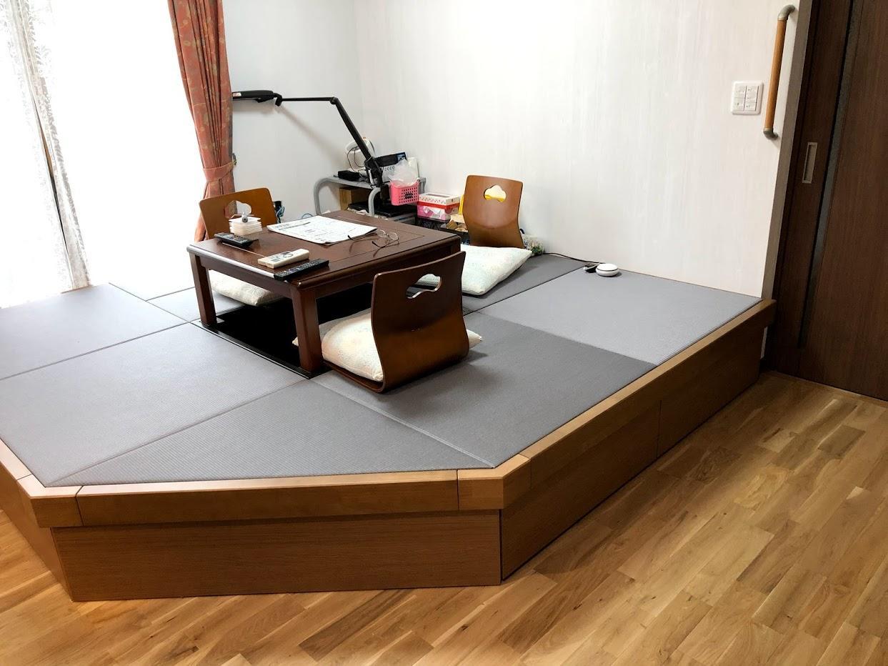 座って過ごされることが多いお爺ちゃんは、小上がりの畳コーナーへ掘り炬燵を設置して特等席を。