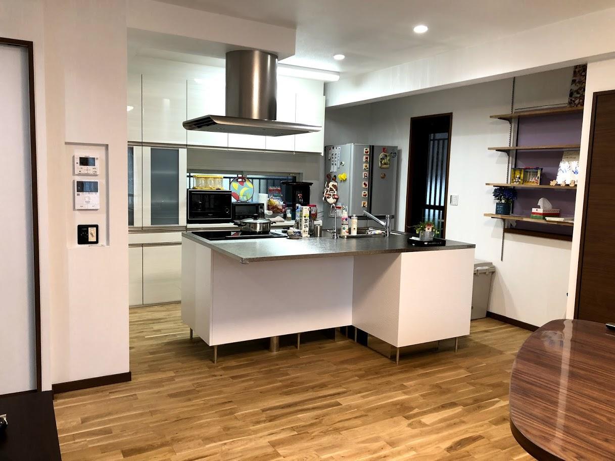 解放感のあるキッチンスペースがご希望の奥様は、リビング中が見渡せるアイランドキッチンを。