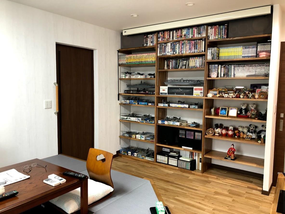 映画好きなご主人は、本格的なプロジェクターを用いて大型スクリーンでの視聴を。