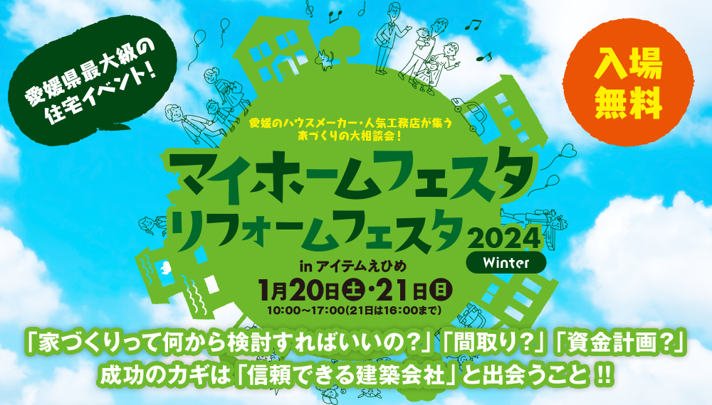 1/20(土)・21(日) にアイテムえひめにて県主催イベント「 えひめ暮らしと住まいフェア」に1ブースを借りて出展します!