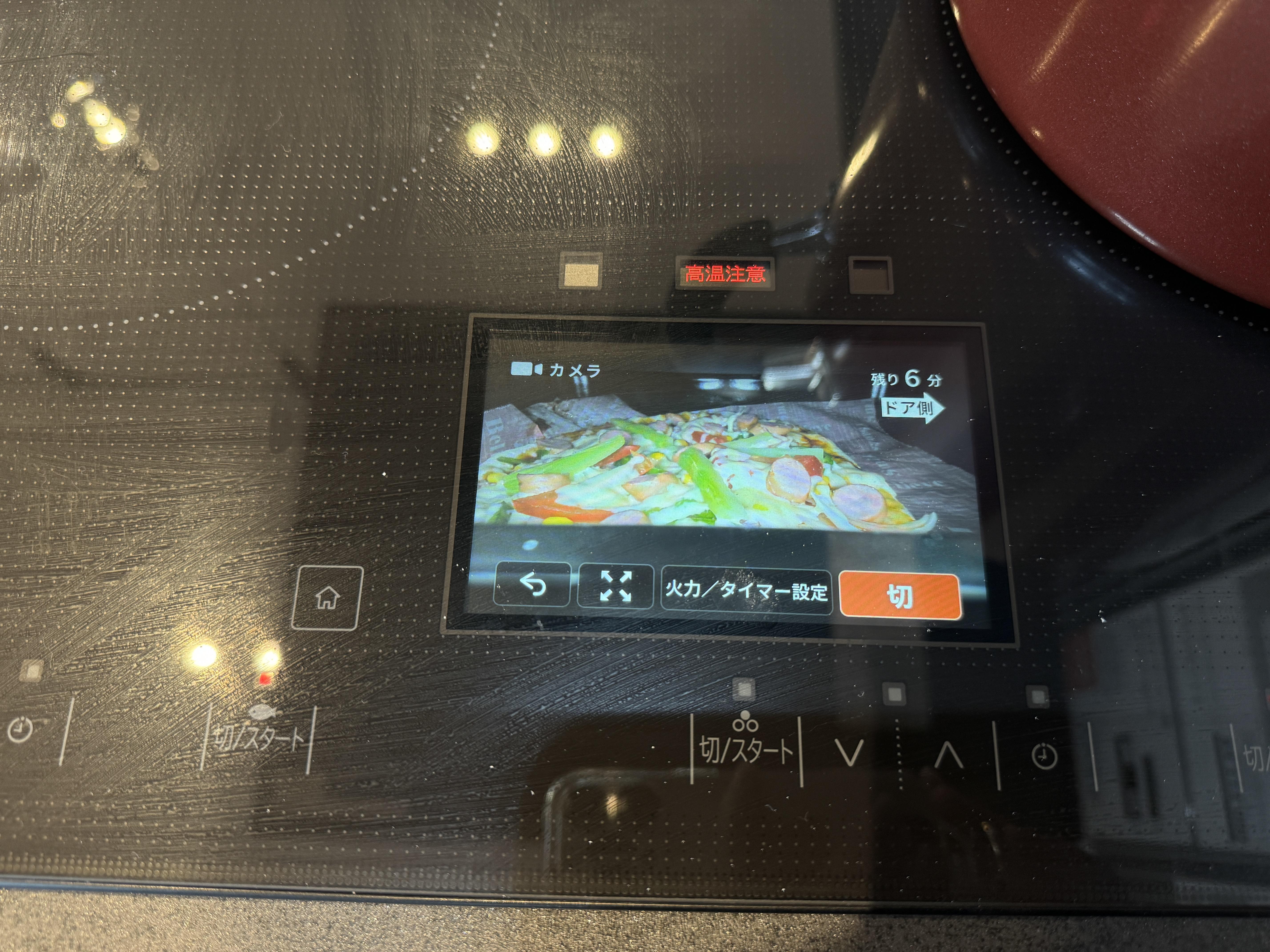 最新IHのコンロにはモニターが搭載しており、ピザの焼き加減がモニターから見れました