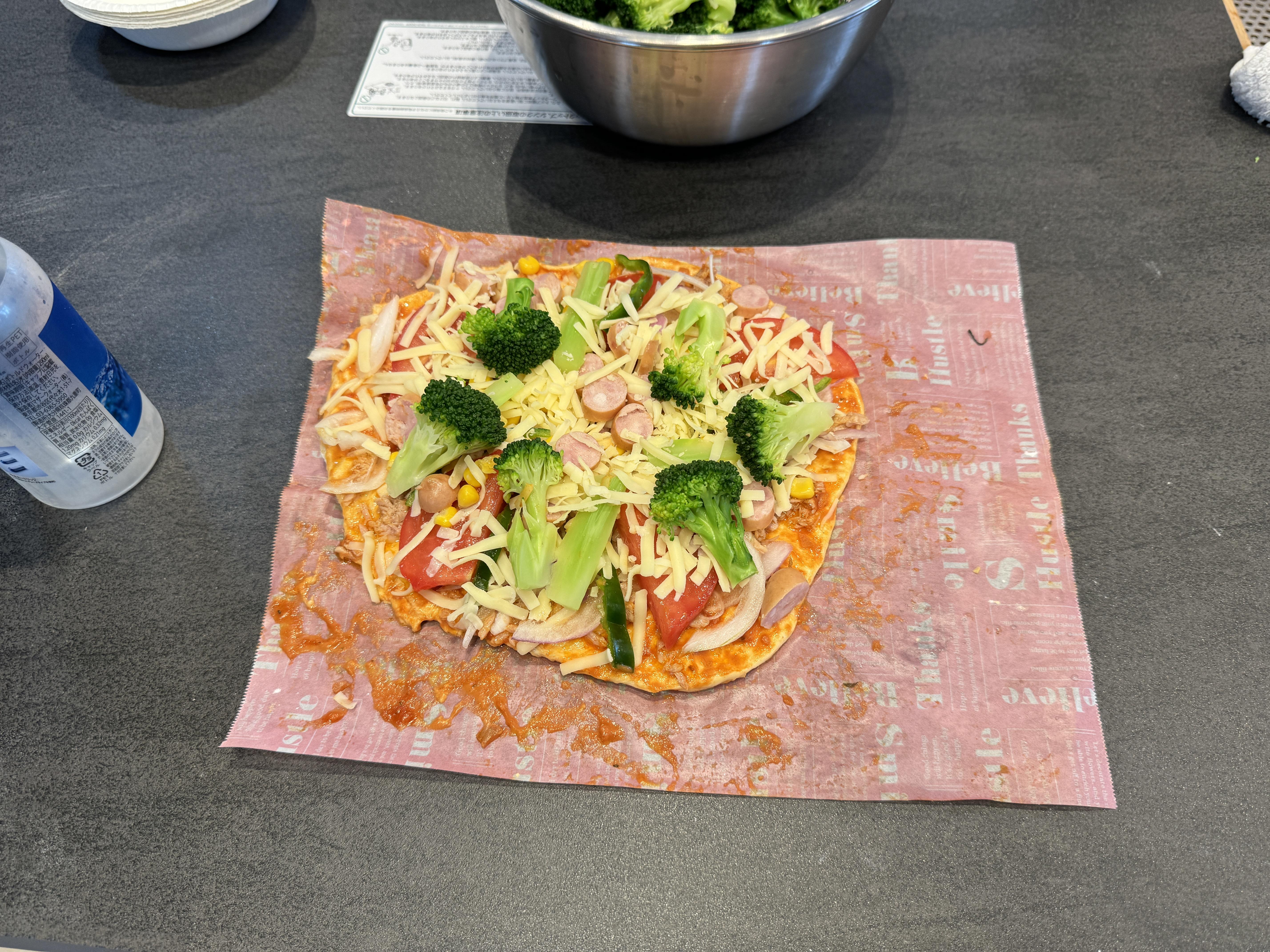ヒレカツ・ミートソースパスタ・サラダ・ピザを作りました。