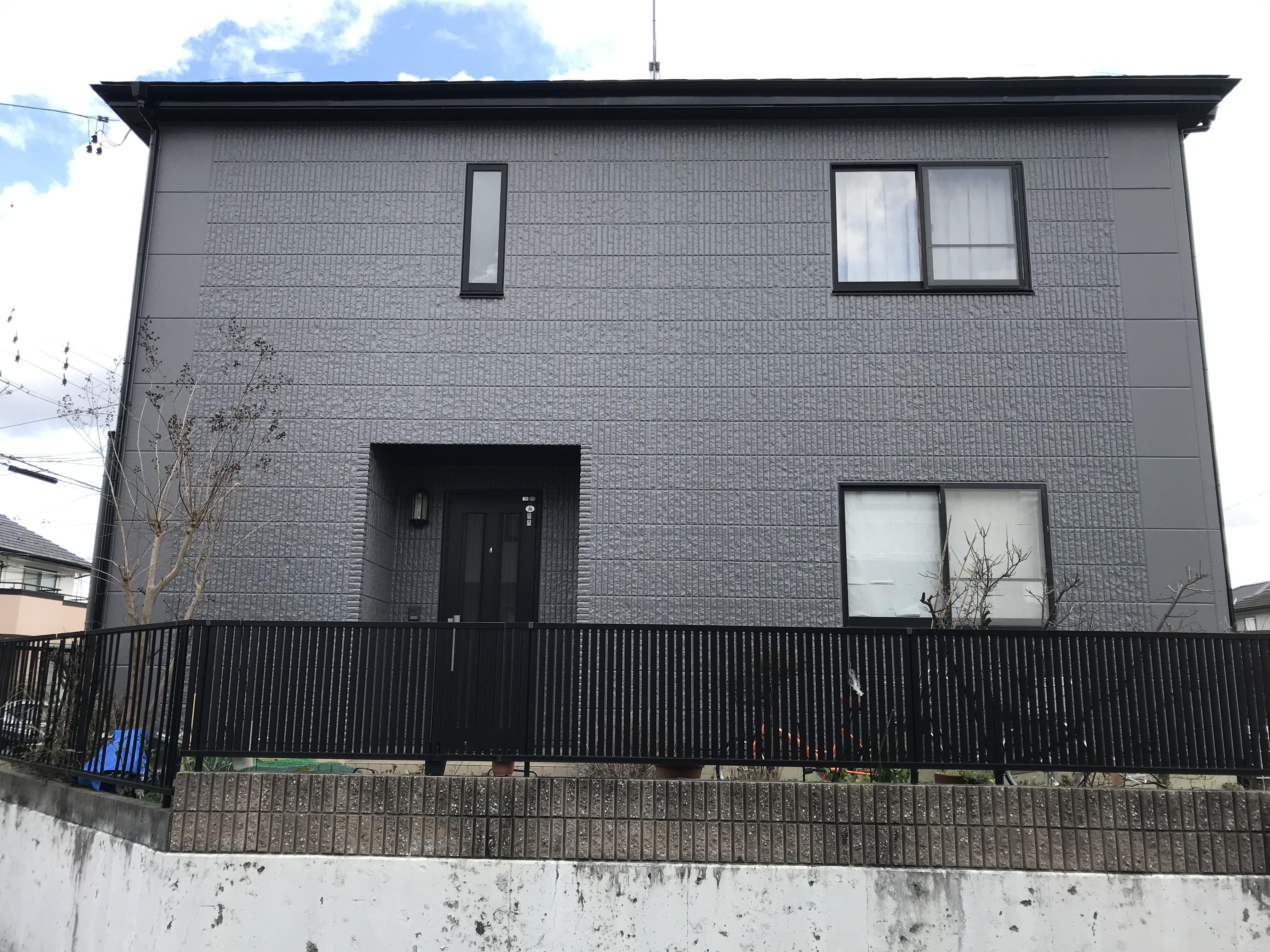 今回、塗料はシリコン樹脂で塗替えをさせて頂きました。 色でお困りの方はカラーシュミレーションも作成可能です! Y様も当初、予定していなかったグレー系ですがカラーシュミレーションで気に入って下さり モダンであきのこない、落ち着いた雰囲気に仕上がりました!