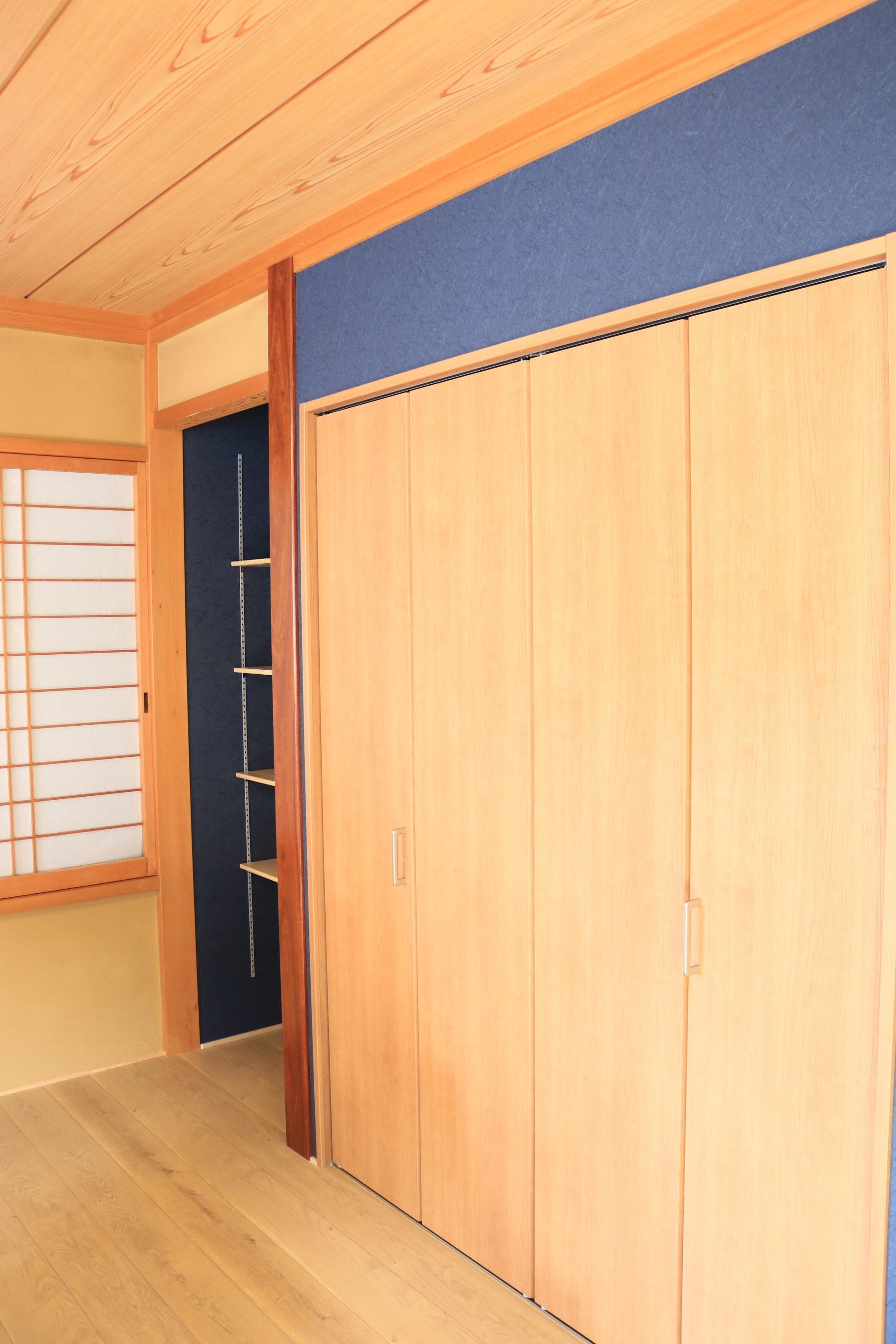 もともと床の間だった所は可動収納棚、襖もクローゼットに変更しました。