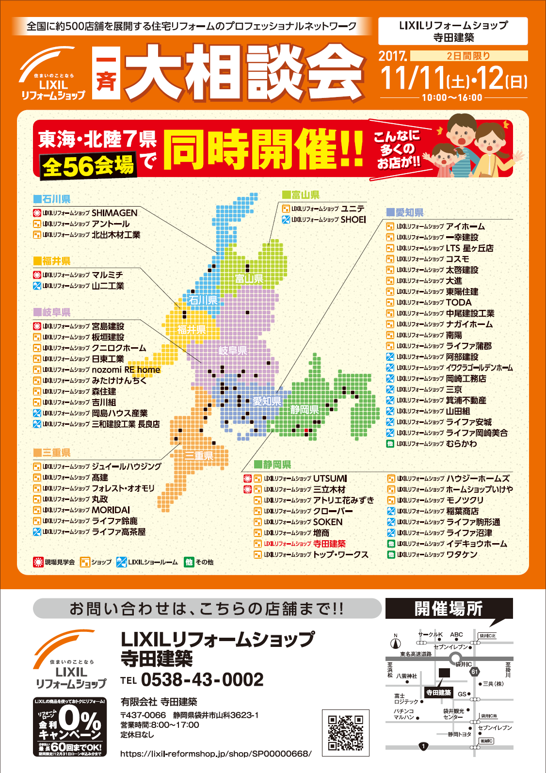 11月11日(土)~12日(日)『LIXILリフォームショップ一斉大相談会』!!