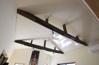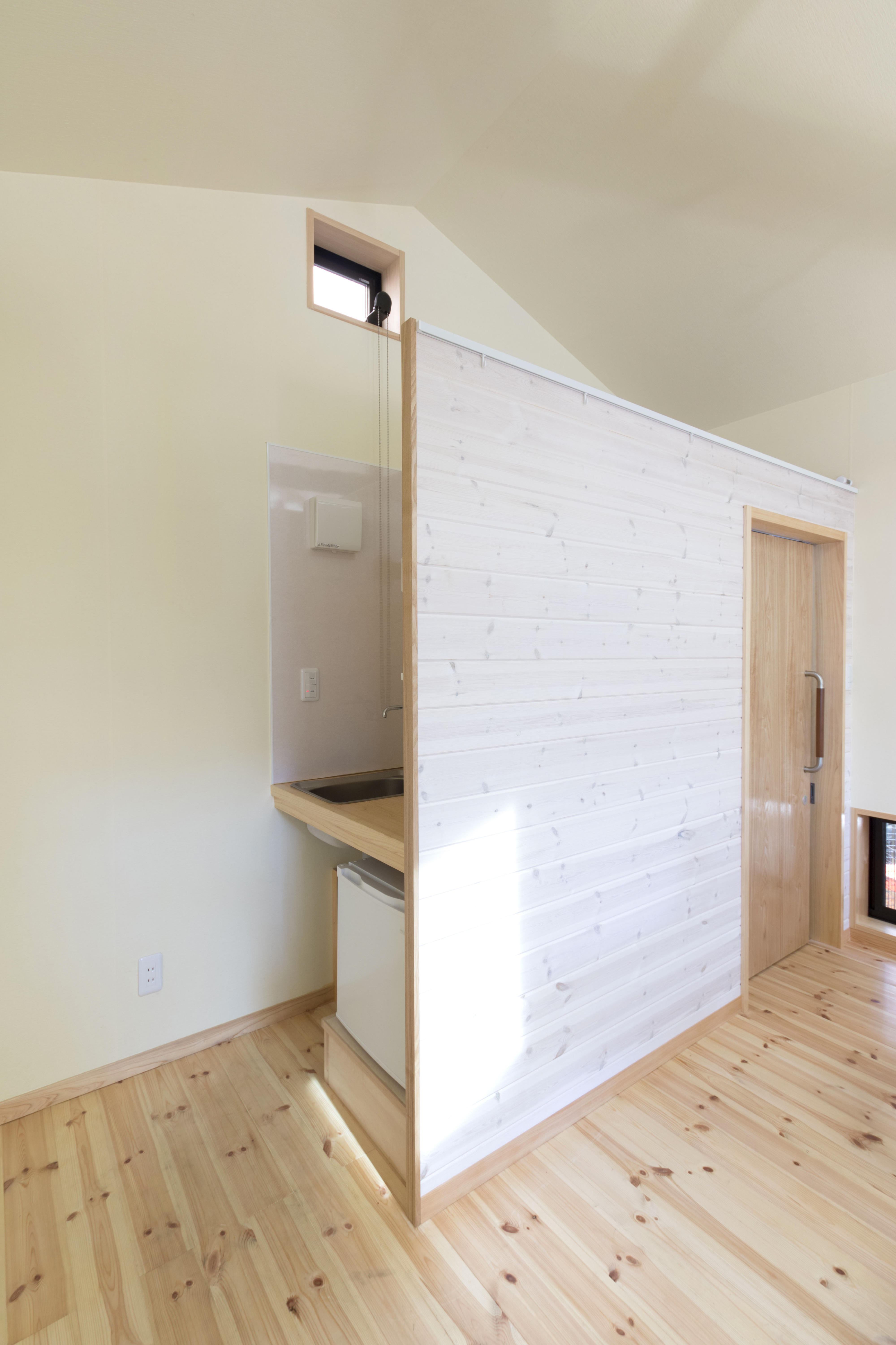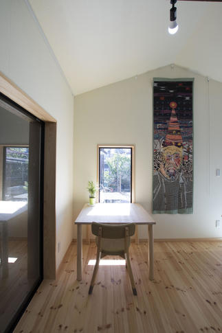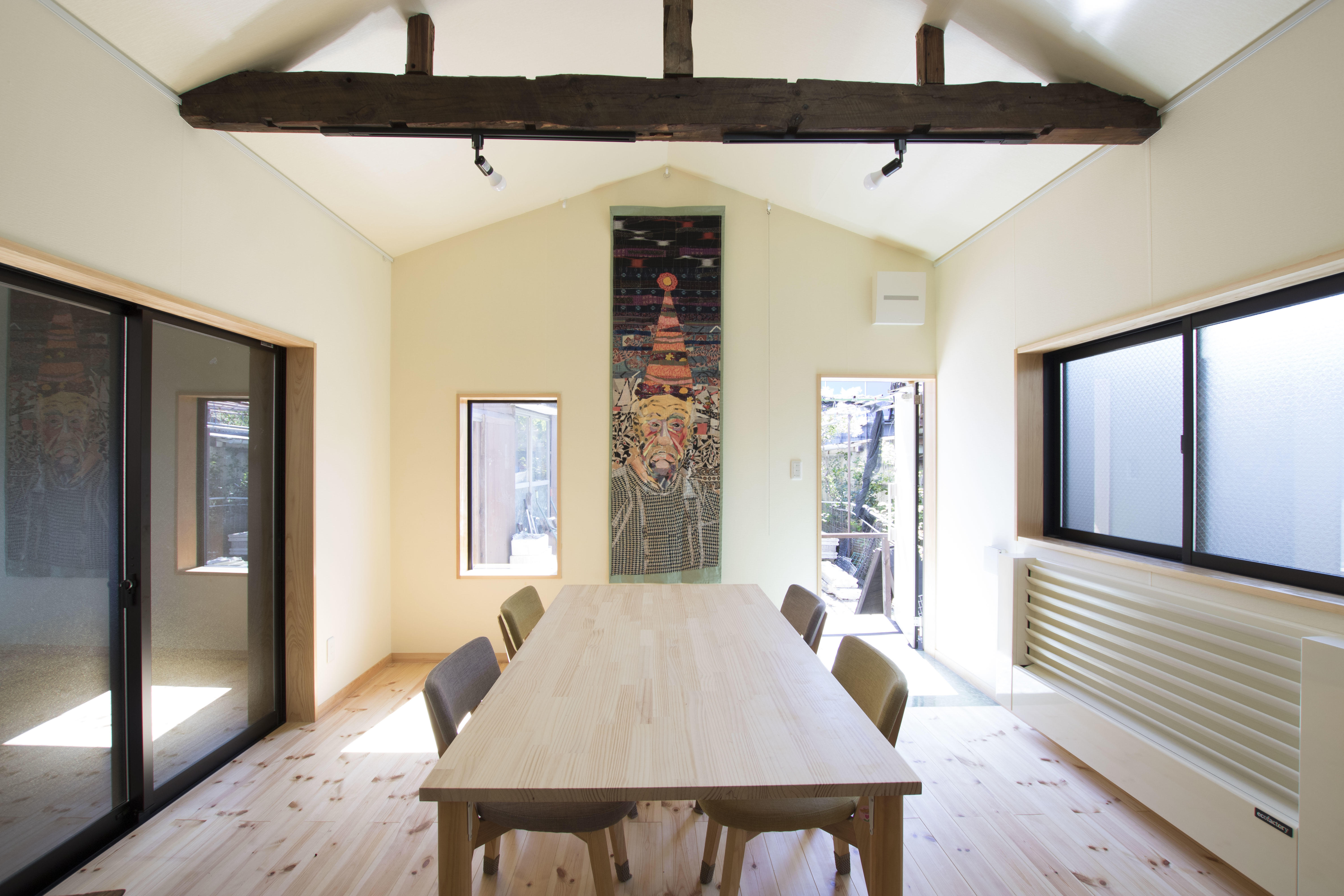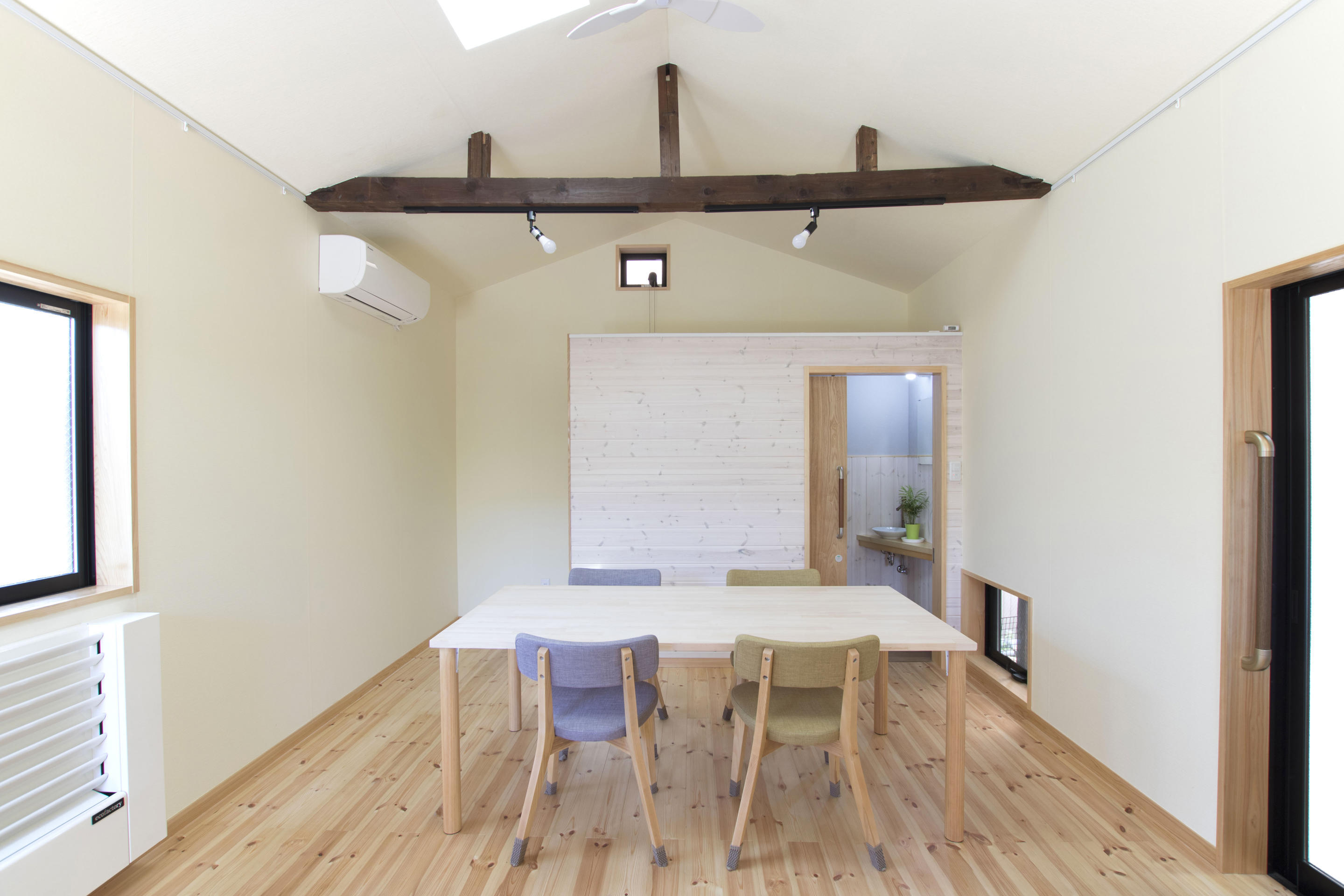 倉庫として使用していた離れを趣味の部屋に改修。耐震改修と省エネ性能向上リノベーションで、新たな憩いの場に生まれ変わりました。既存の土壁は極力残し、無垢の木材や調湿機能の高いボードを使用。断熱材も吸放湿性のある材料を使用することで、建物全体の湿度が快適に保たれます。また敢えて残した既存の梁は、限られた空間にアクセントと広がりをもたらします。小さい頃から過ごしてきた思い出の記憶を残しながら次の世代にも安心して受け継いでいける、時代を継承するリノベーションです。