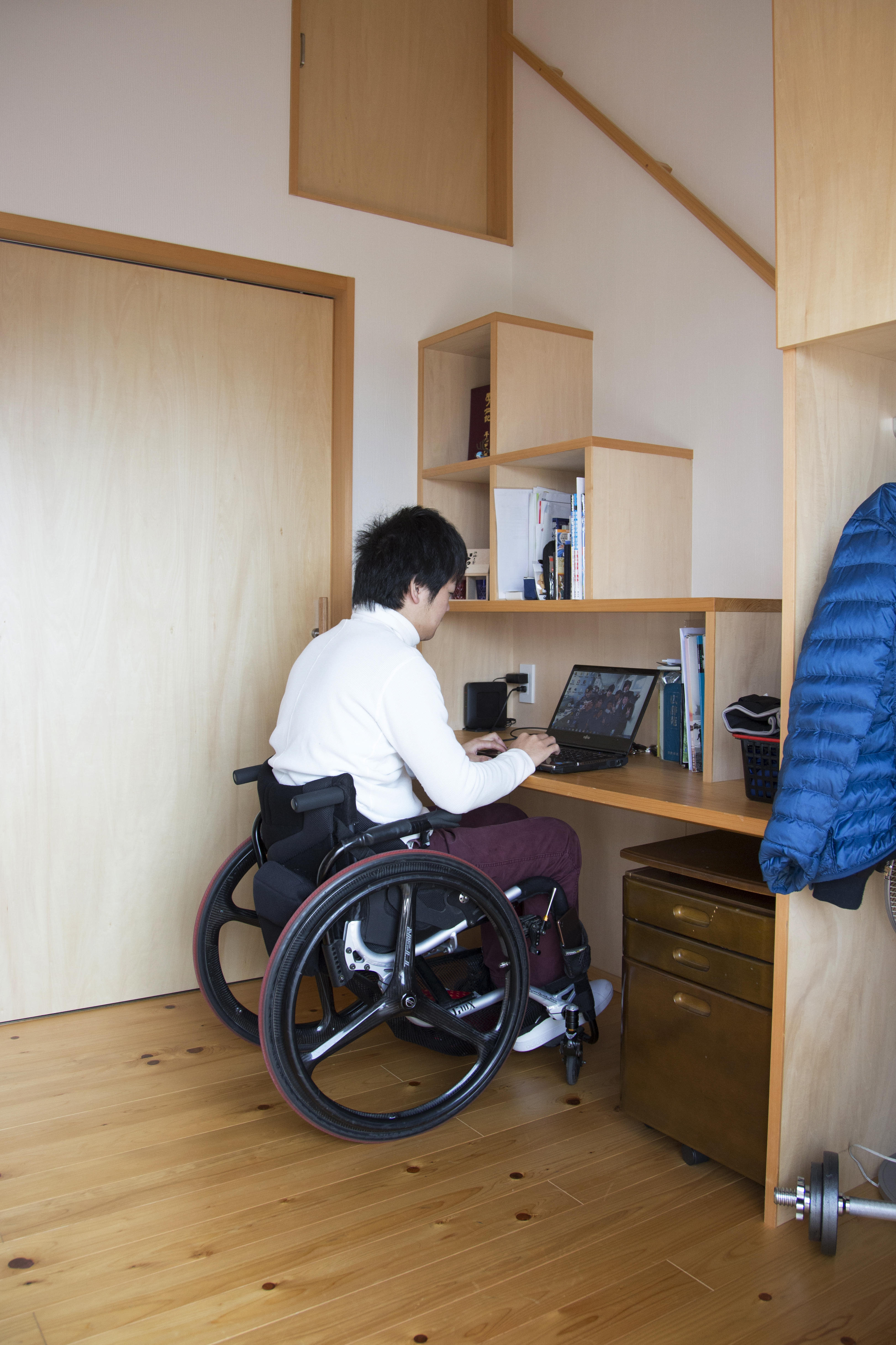 くらしの細かい事柄まで突き詰めて考えないと、後から困り事が起きそうですが、実際に車いす生活をして初めて気づくことが多々あります。自分で思い至らなかったところを、医療関係の方々とは異なる視点でサポートしてくれたのが阿部さんです。誰に相談するかは大事です。 私がオススメしたいのはホームエレベーターです。車いすだからと外出が億劫になってはもったいないと思うのです。エレベーターが外へ行くにも家のなかでも、一人での行動を手助けしてくれると感じています。それにこれから30年、40年、50年ずっと生活していかなくてはいけません。年齢を重ねたときにも、安全でくらしやすい家にしておくとよいと思います。