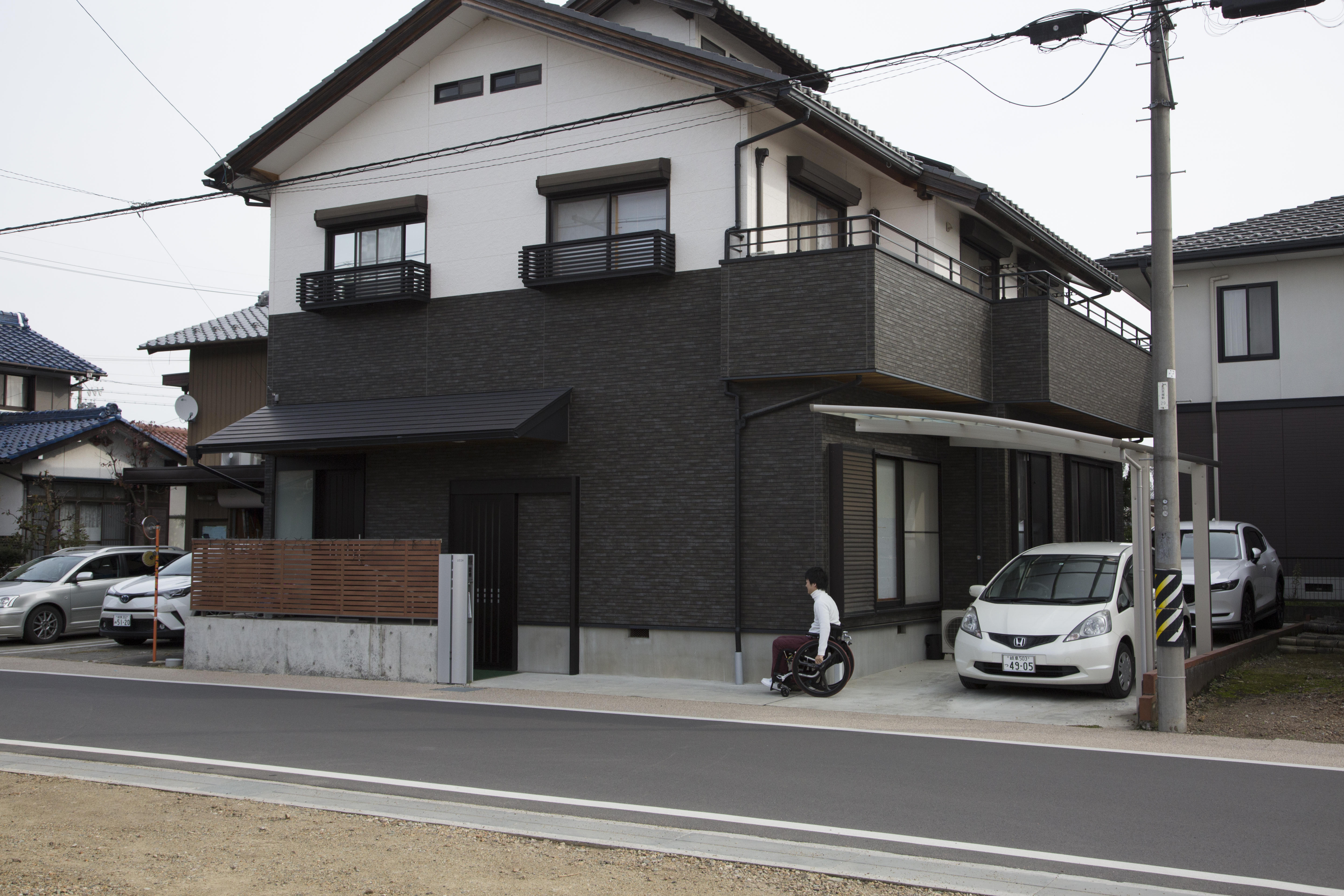 車いす用玄関直結のホームエレベーターで部屋の移動も、外出も楽々
