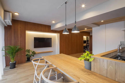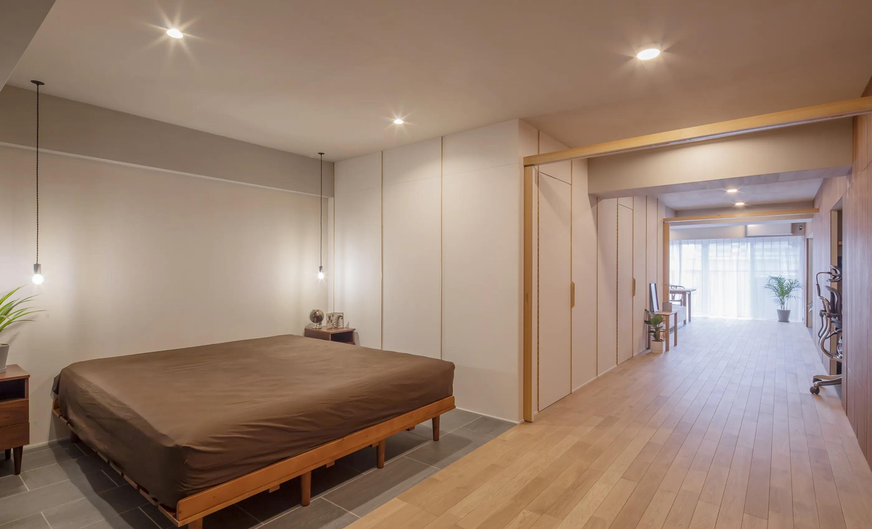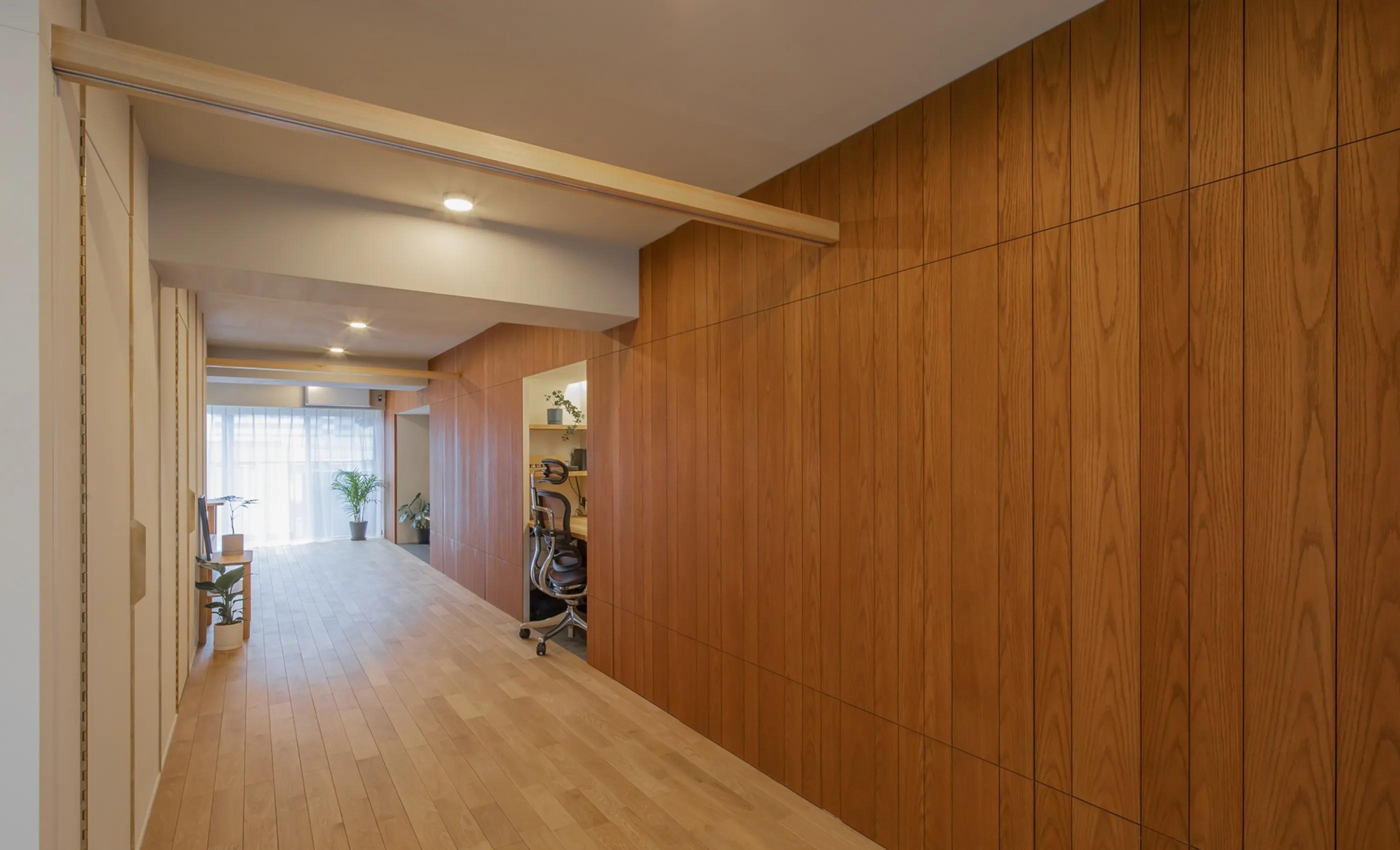 設計の特徴は、住まいの南側のLDKから北側の寝室までを幅広い廊下のような「通り部屋」で貫き、光と風を通すレイアウトとなっていること。