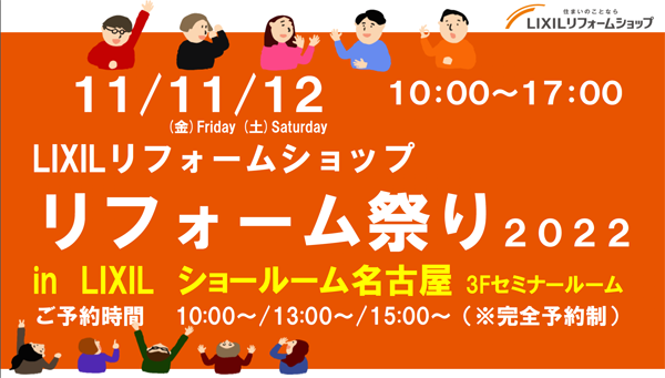 開催場所:LIXILショールーム名古屋 〒450-0003 愛知県名古屋市中村区名駅南4丁目11−4