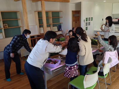 松ぼっくりやひいらぎの葉、杉葉などすべて天然素材で飾り付けをしワイガヤで楽しい時間を過ごす事ができました。