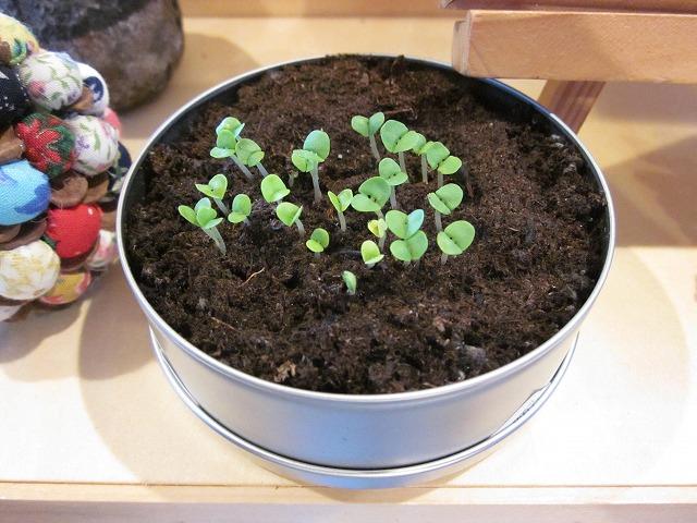 土を水で戻し、種を蒔くこと1週間弱・・・