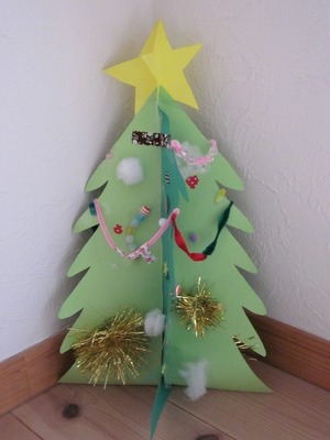 今年は(今年も?)バタバタとして なかなかクリスマスツリーを出さなかったら 小学生の娘がクリスマスツリーを作って飾ってくれました。 親バカですがちょっと感動です!