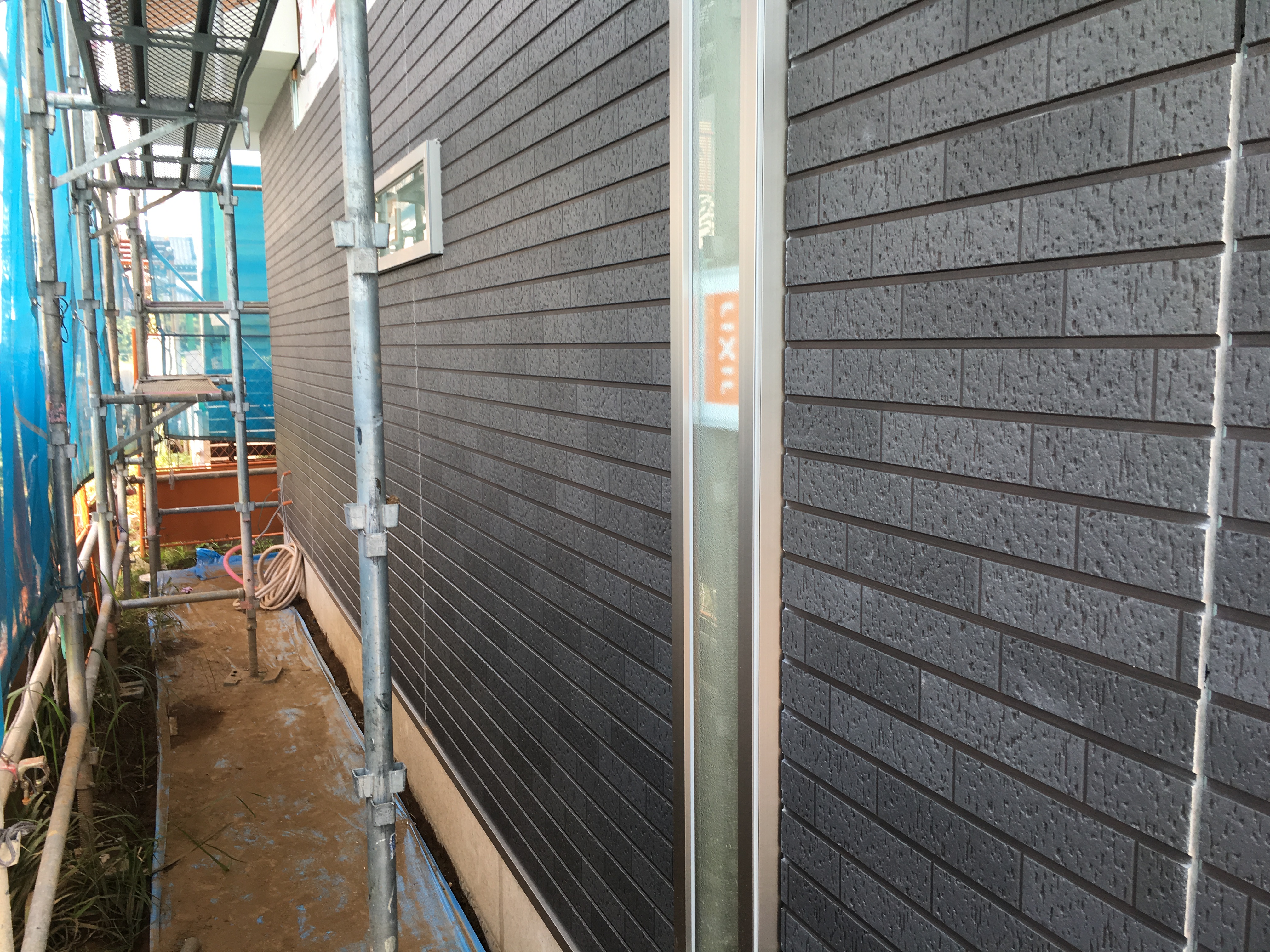 足場があり、外観をお見せできませんが、黒系のおしゃれな外観です。
