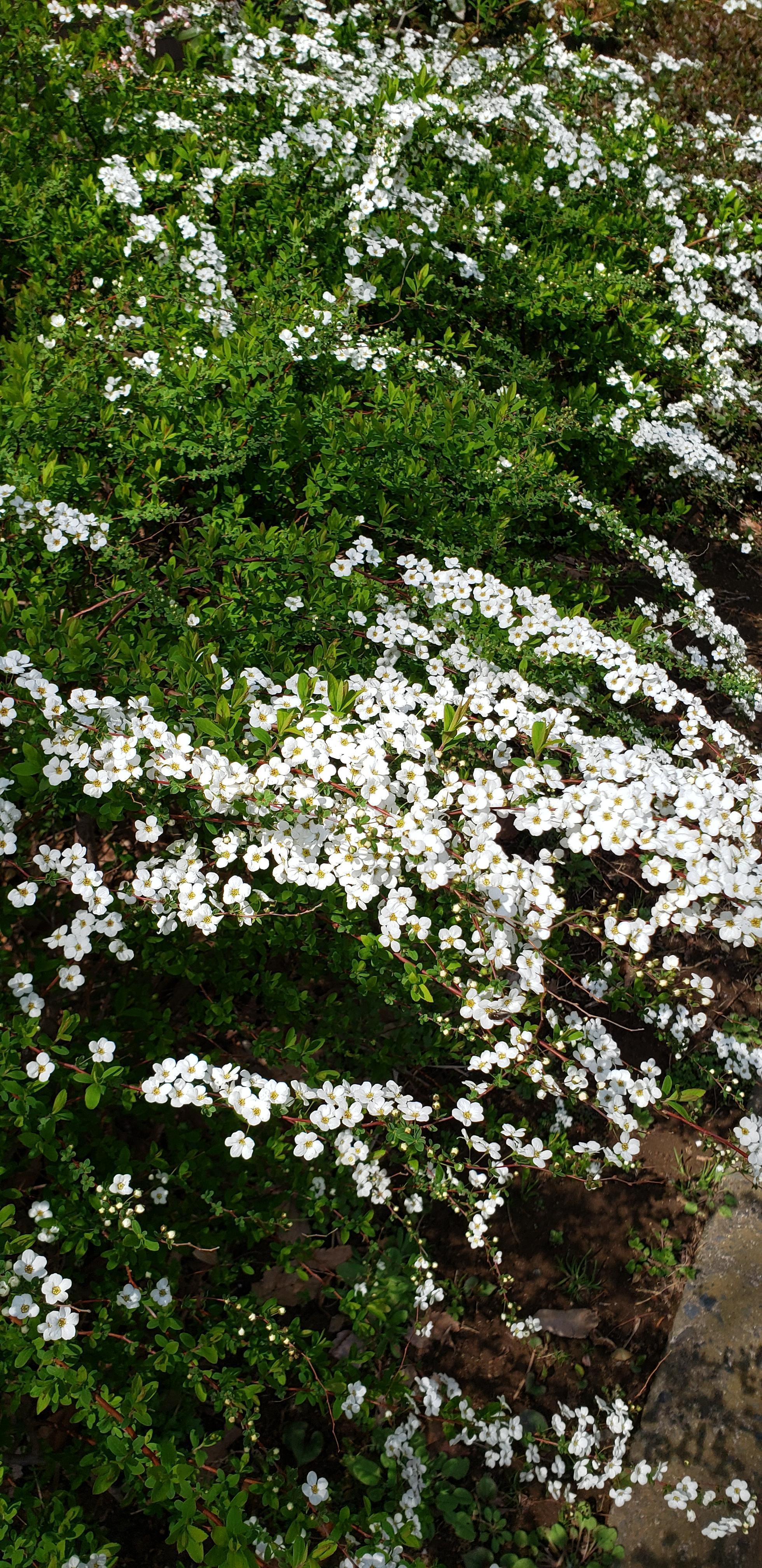 この時期子供もストレス発散してるんだなと!その横では、白い可憐な花が見事に咲いて、微笑ましい光景でした。