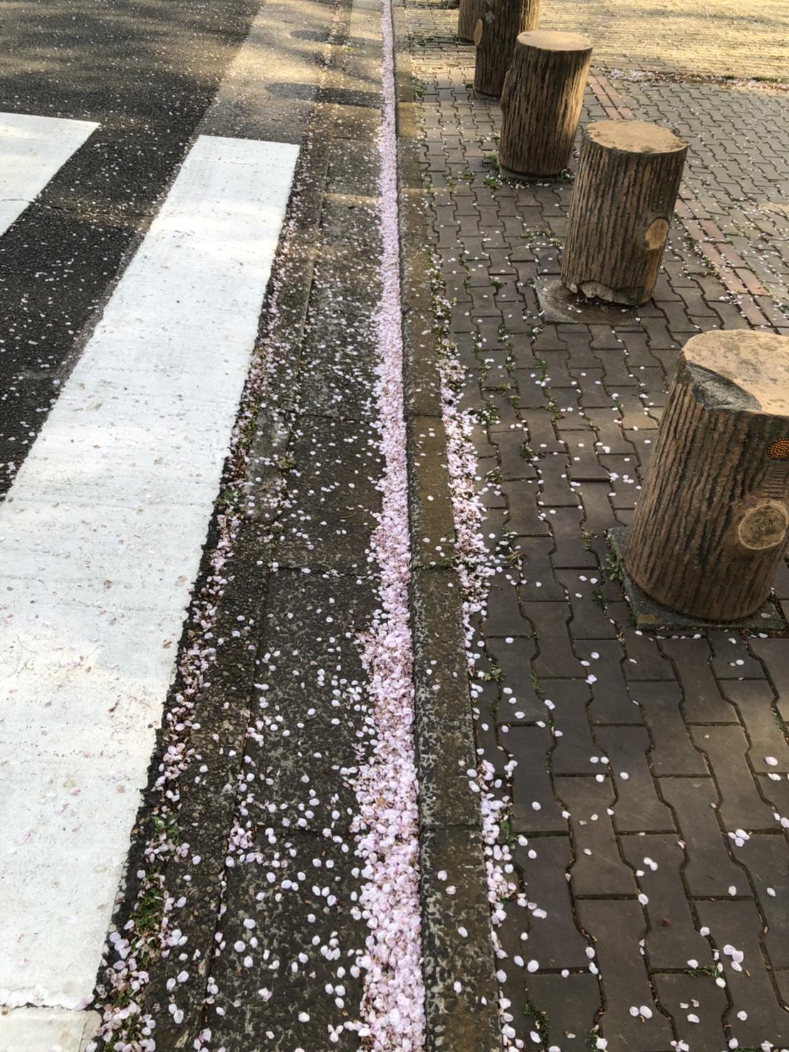 また、道路脇には花びらが溜まり綺麗な直線が出来てました。