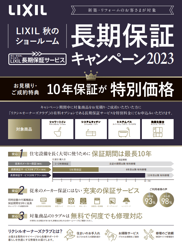 ただいまLIXILでは住宅設備を長く大切に使うために長期保証キャンペーンを開催しています!