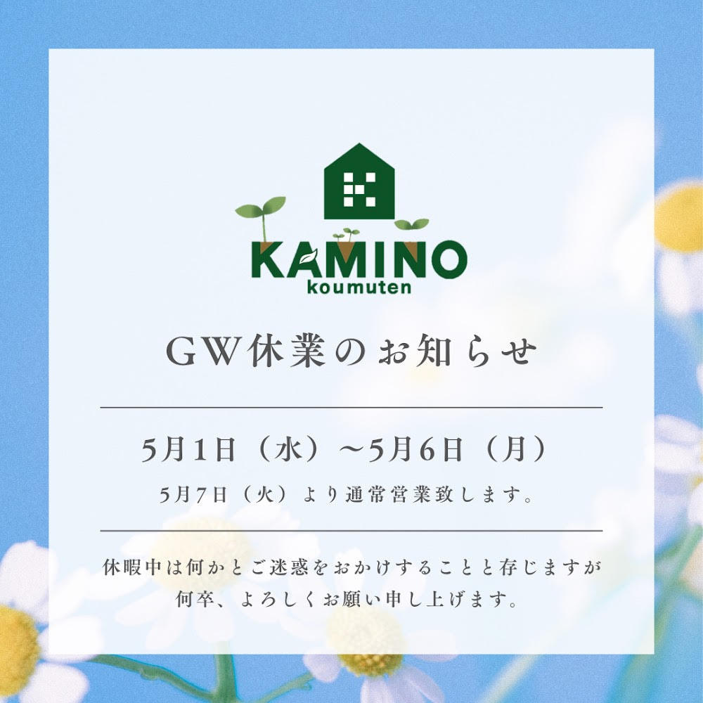 【GW休業のお知らせ】5月1日(水)〜6日(月)までお休みを頂きます!7日(月)から通常通り営業致しますので、宜しくお願い致します(^^)