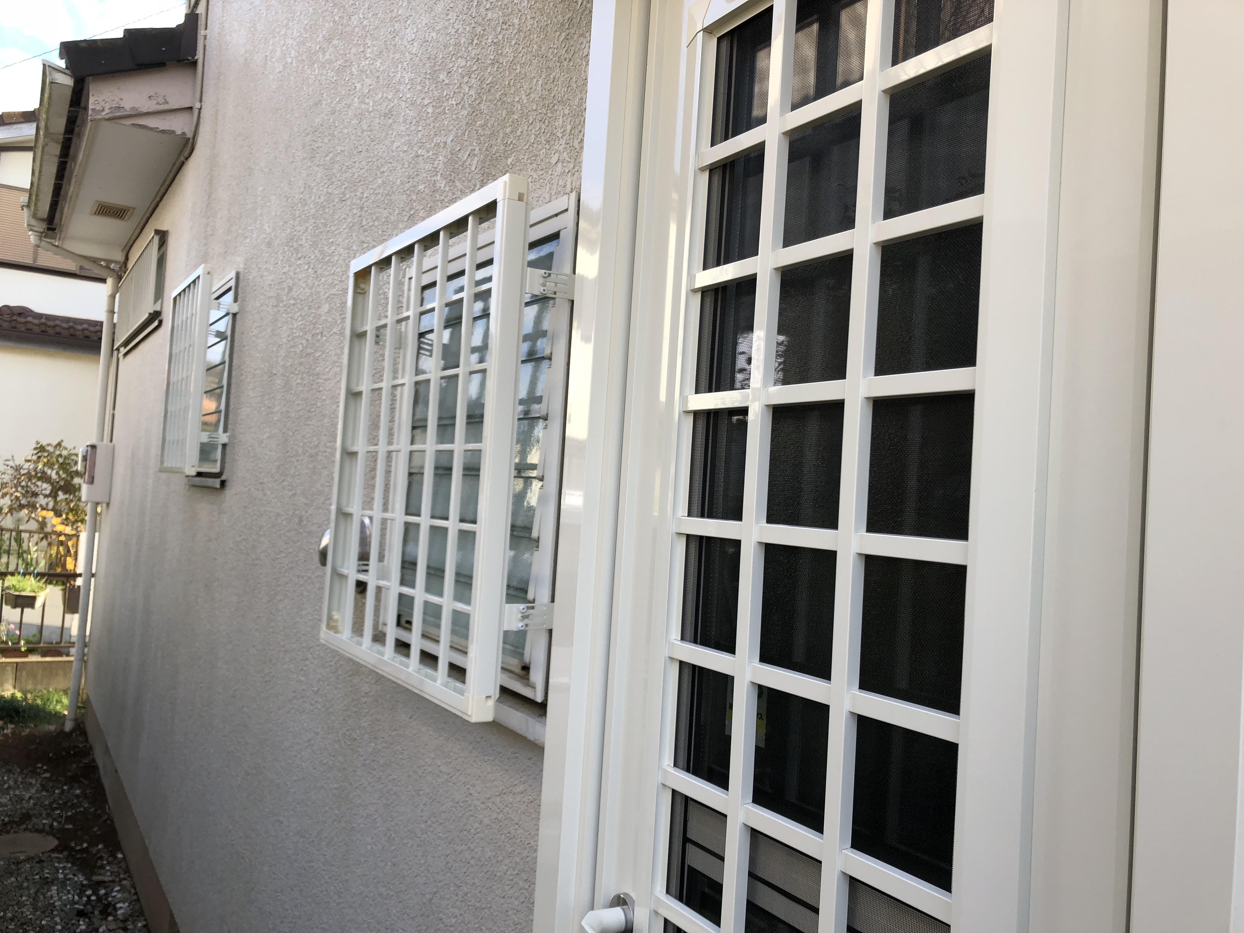 防犯性能に優れた製品と面格子のねじ山をつぶして簡単に外せないようにしました。