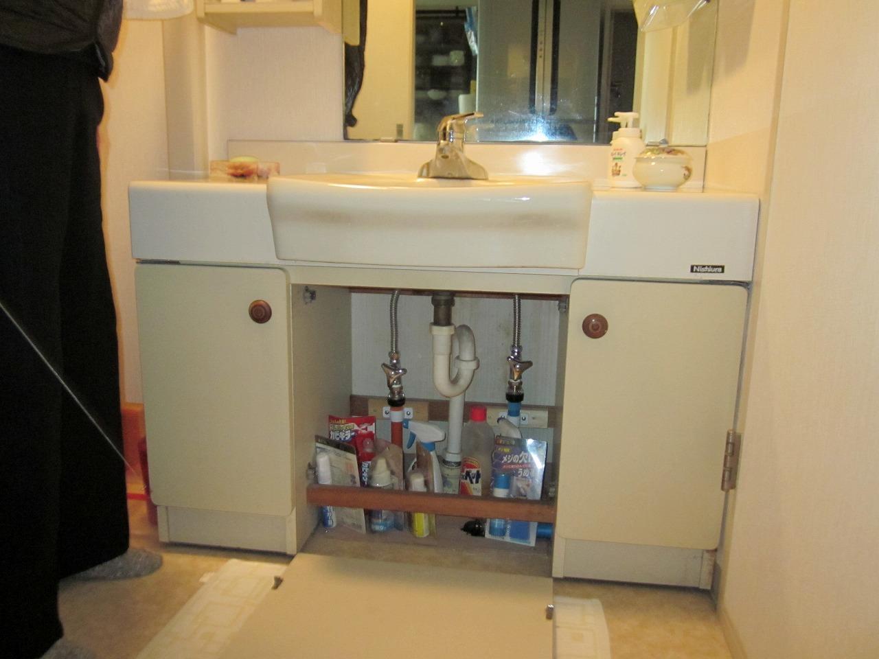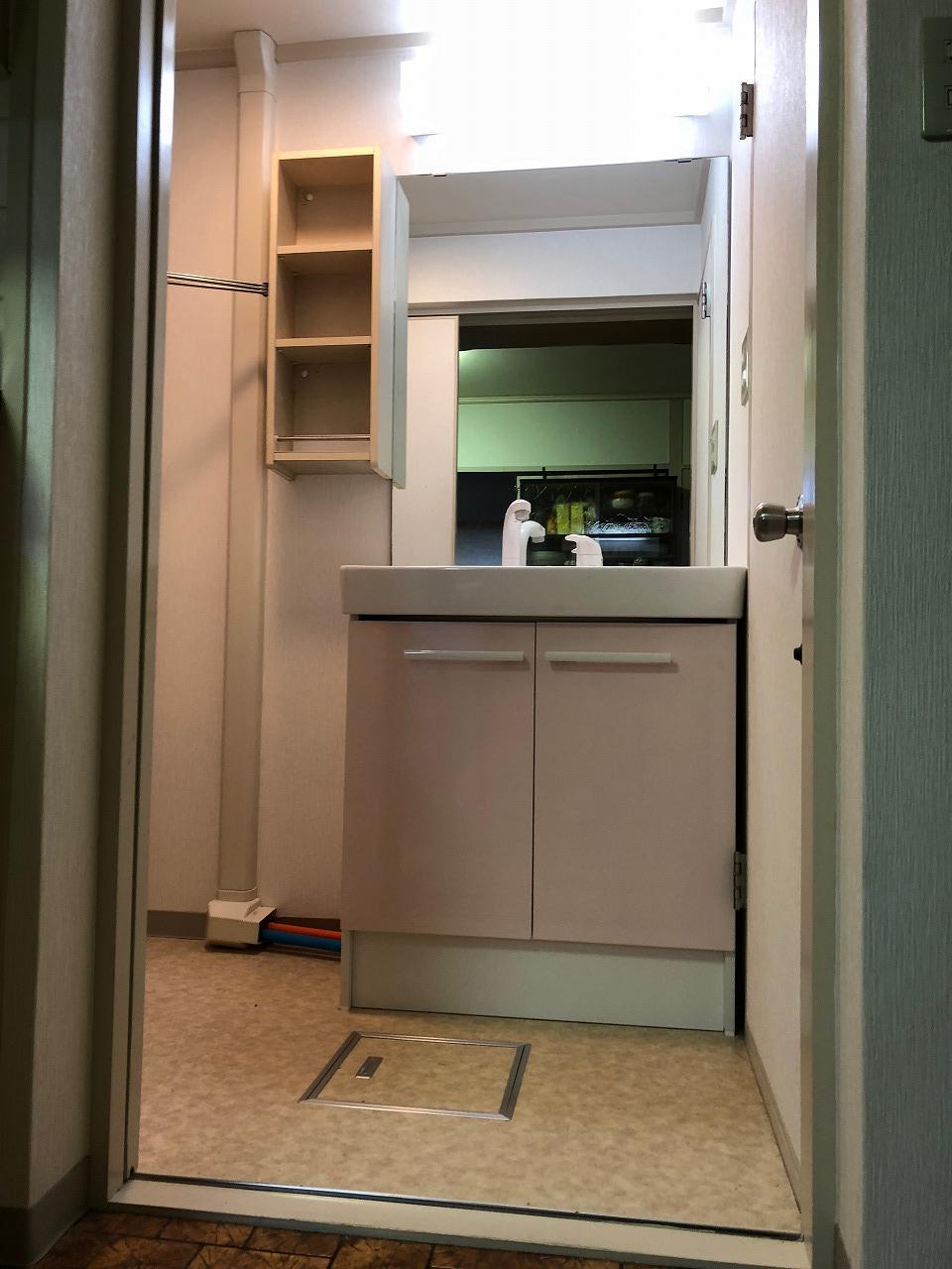 配管が見えてしまっていたので収納も兼ねてコンパクトな洗面化粧台に交換しました。