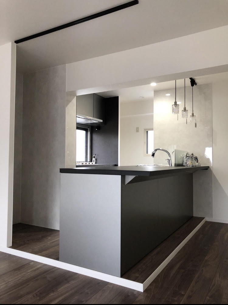 中古の住宅を購入されたお客様からお問い合わせいただきました。 2階と3階を新築そっくりさんにリノベーション! 載せている写真は2階になります。 BEFOREに載せている写真の緑のテープの場所が、 AFTERのキッチンになりました。