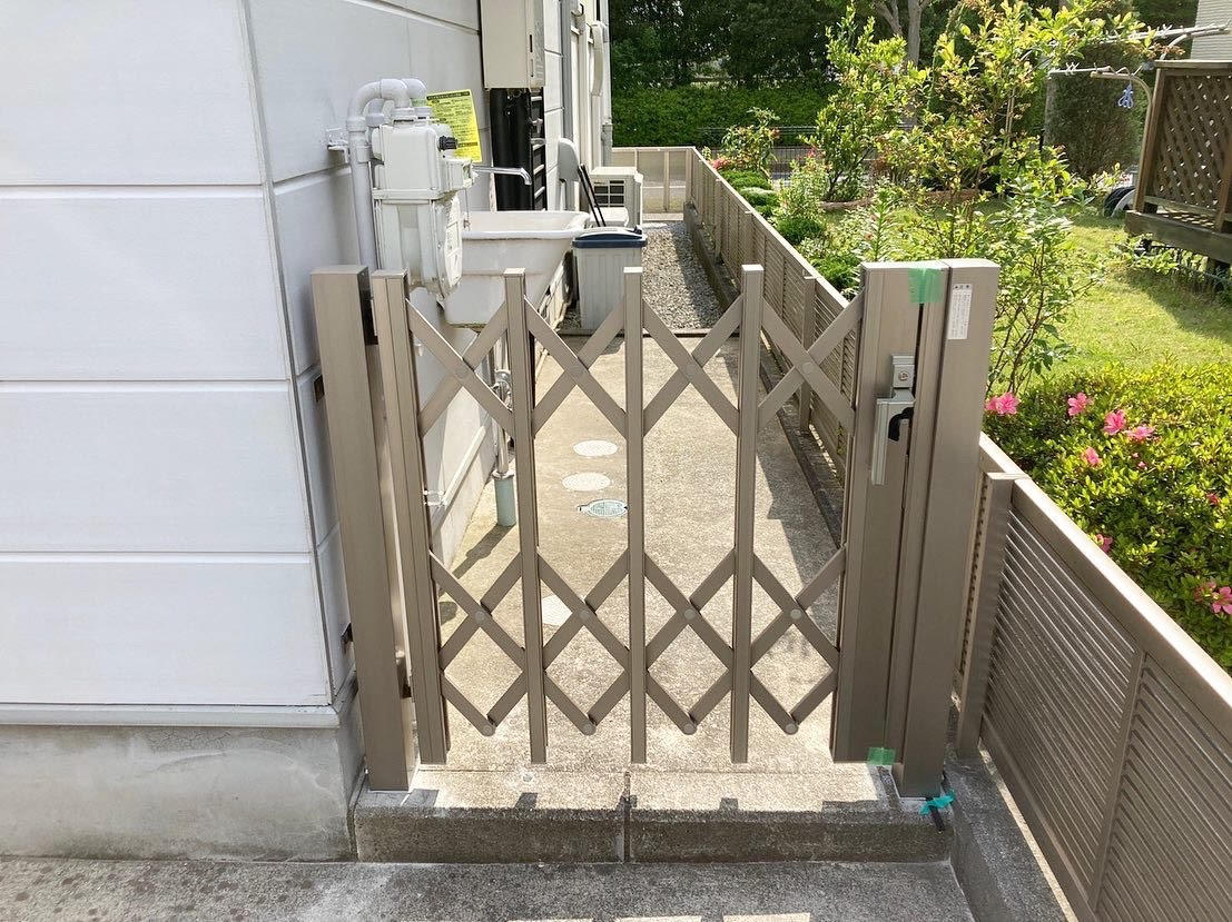 防犯として庭に人が入ってこないように門扉を取り付けました。 鍵付きなので防犯面も安心です。