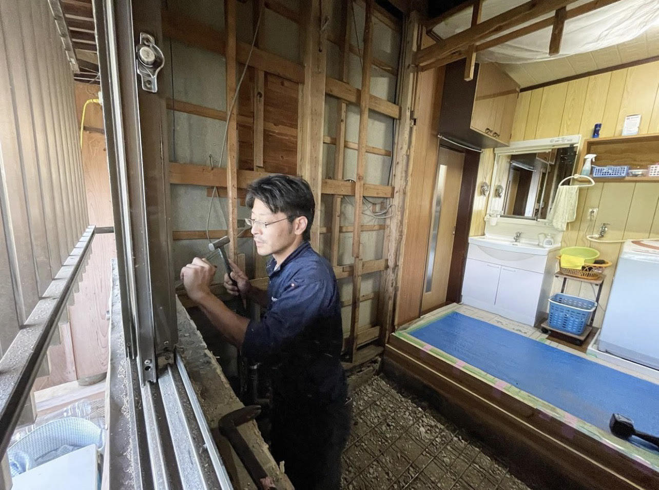 既存のお風呂はタイル張りなので、タイルを解体して、