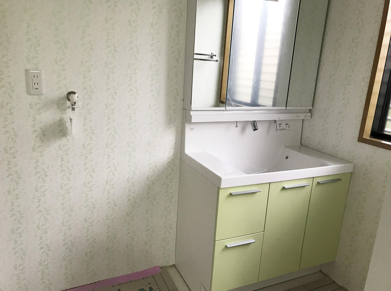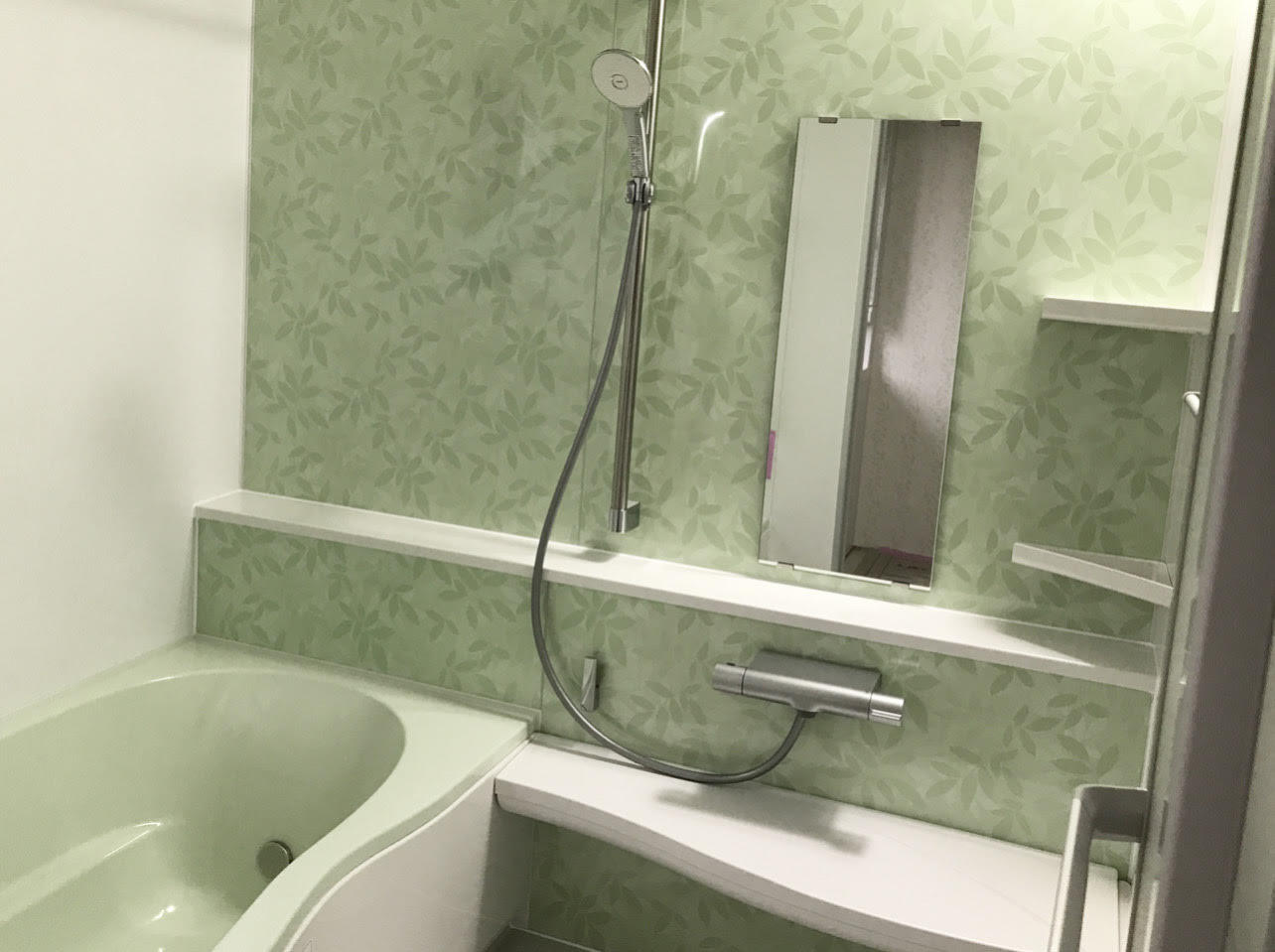 ご主人様がグリーンがお好きとの事で、ショールームで素敵なパネル、浴槽を選ばれました。