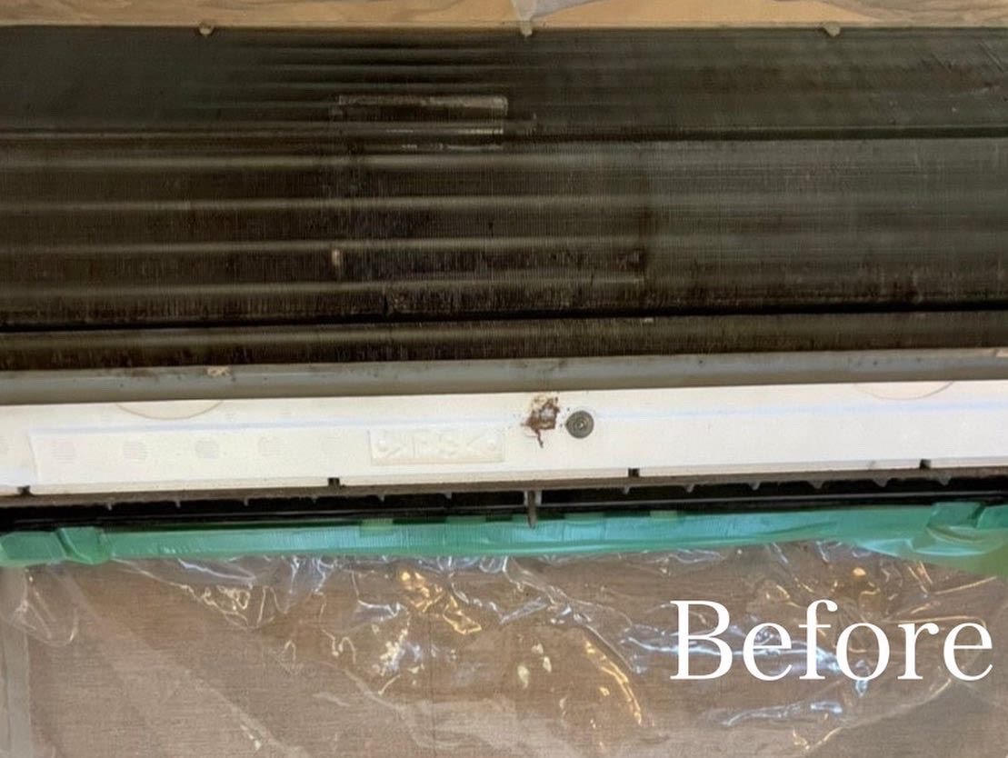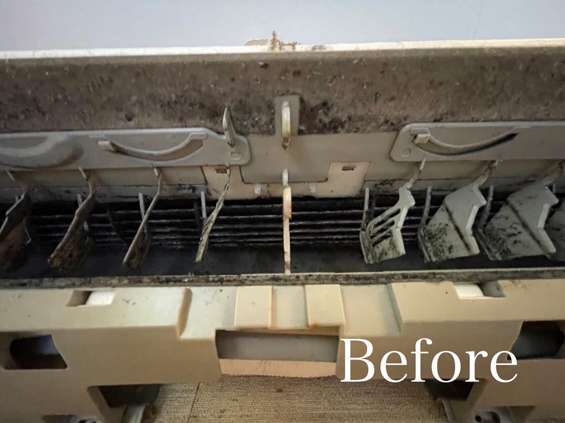 夏場暑くて沢山使用した冷房。 エアコン内部は冷たく、止めた時に部屋が暑くなると内部が結露し、カビてしまいます。