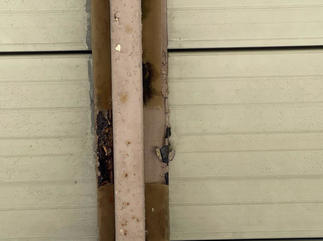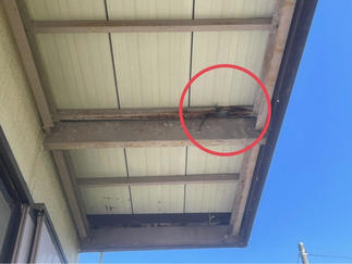 穴から溜まった雨水がポタポタ落ちている状態でした