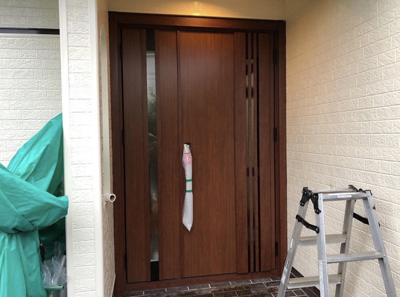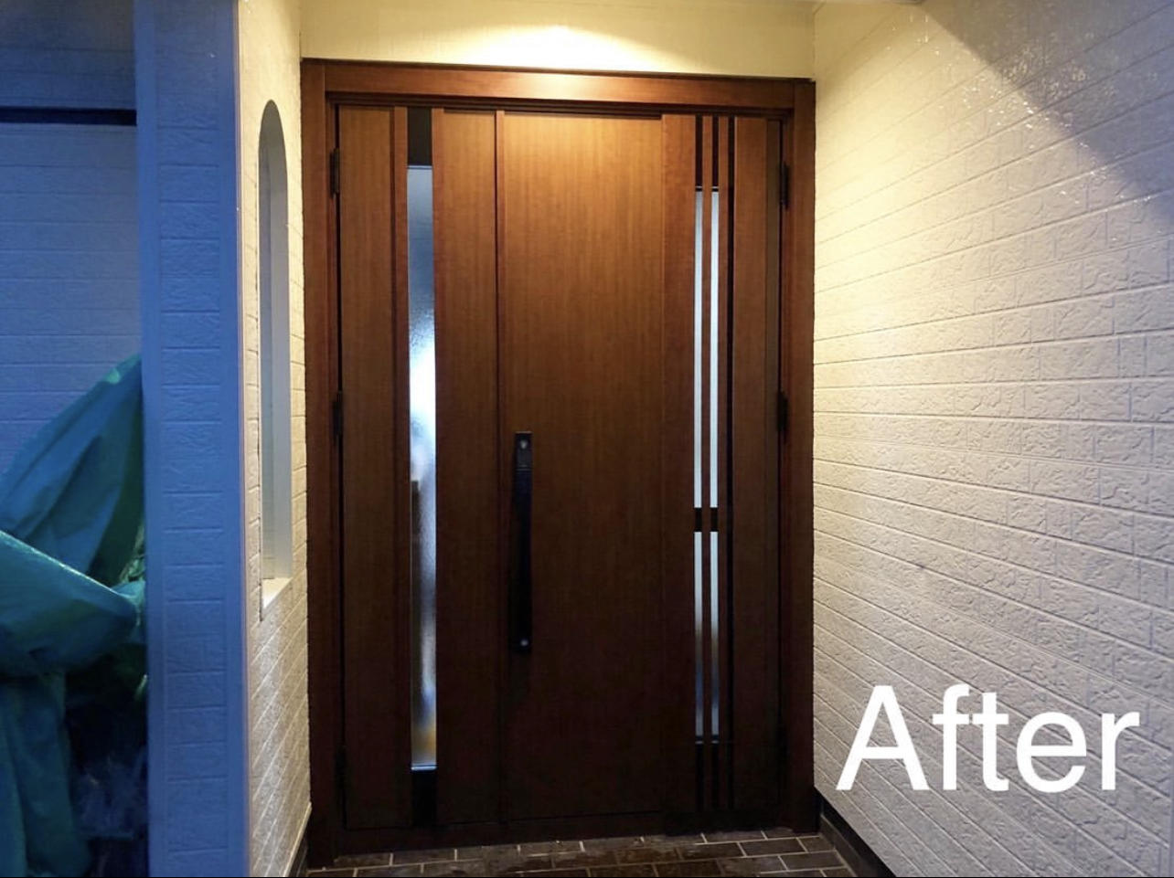 ドアの色やデザインをお施主様と良く話し合い、 40年以上使い続けた玄関ドアをリフォームしました!