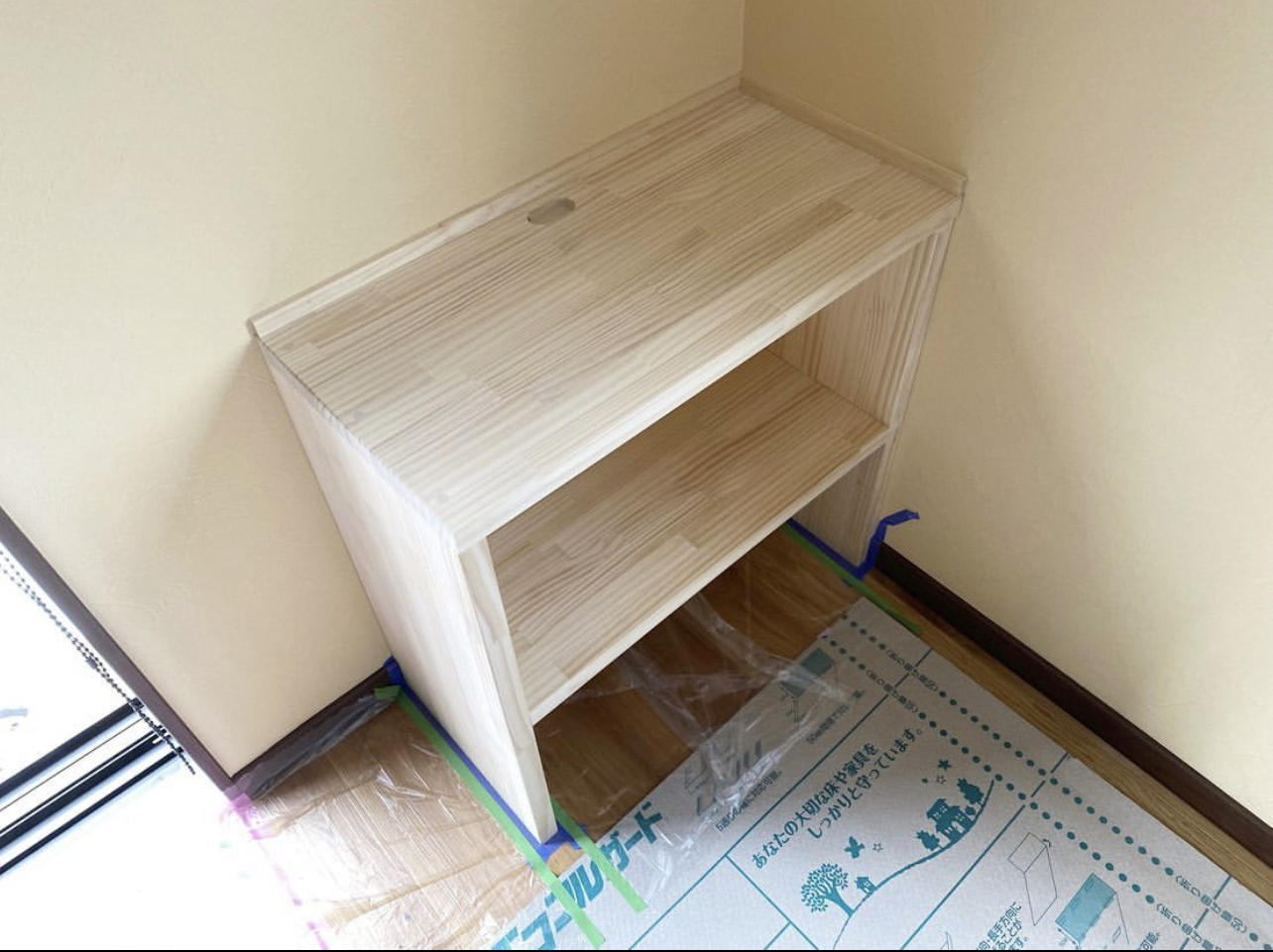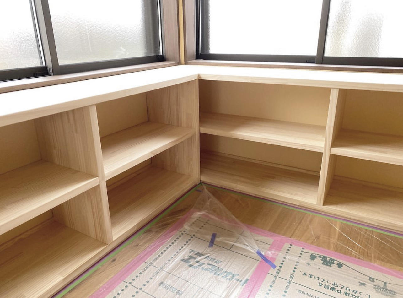仕上げの塗装を施し木のぬくもりあふれる造作棚が完成しました(^^)/ オーダーメイドの家具も作っておりますのでお気軽にお問い合わせください!