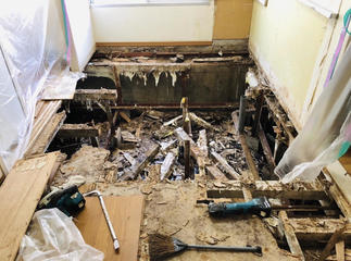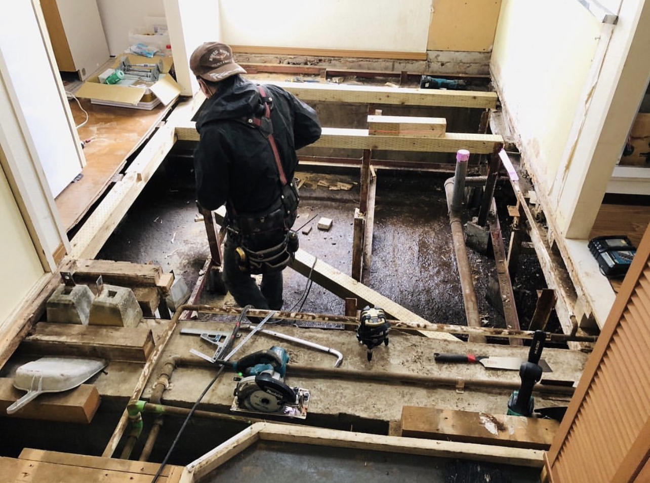 床板の下の骨組から、ダメだと感じ、全解体工事となりました。
