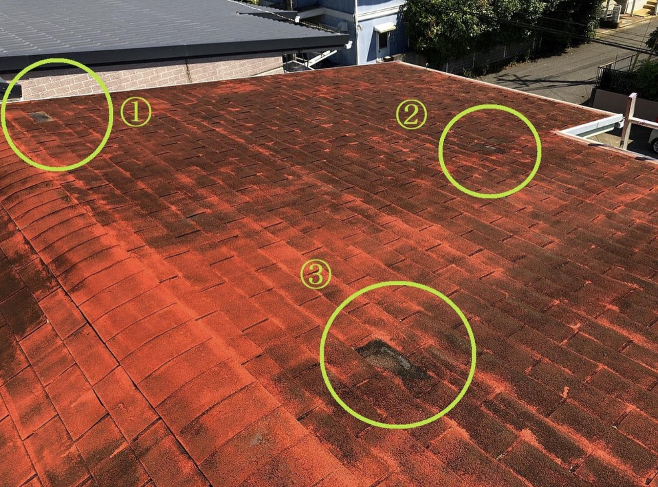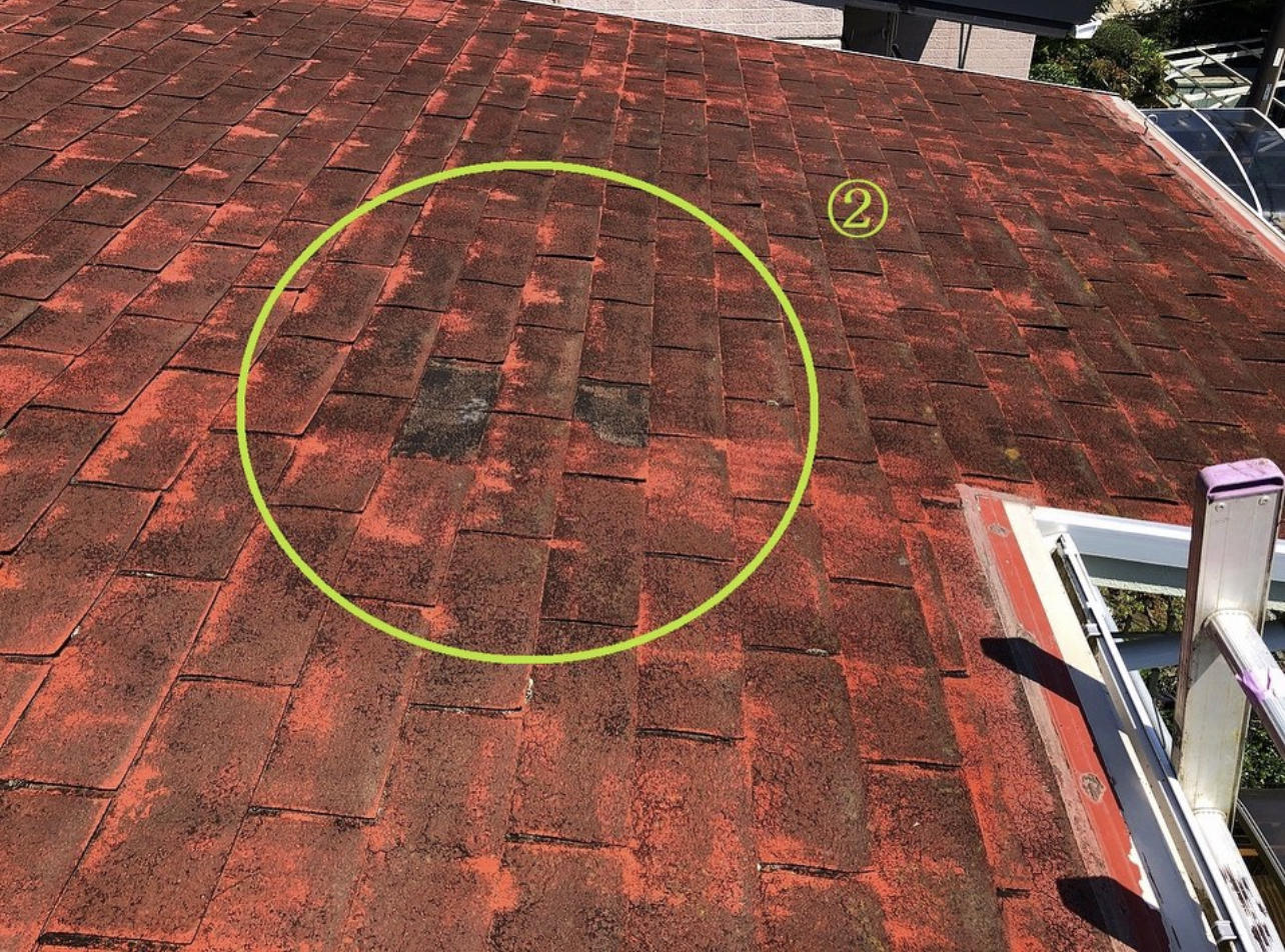 アスファルトシングル葺の屋根で、長年の紫外線や雨風で経年劣化、硬化していました。