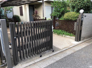 前回投稿しました「ポスト交換工事」の お家の収縮門扉の工事をさせて頂きました。