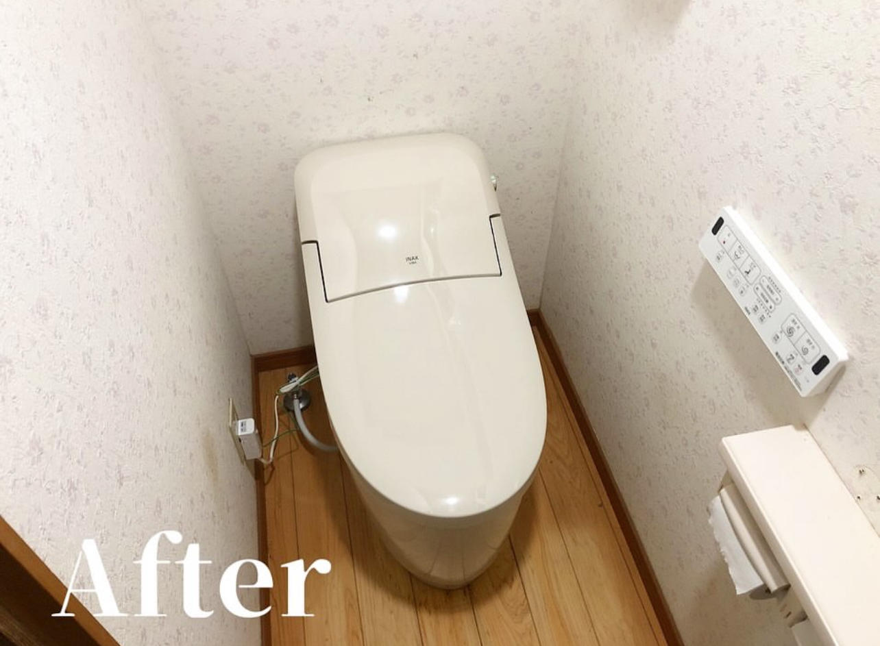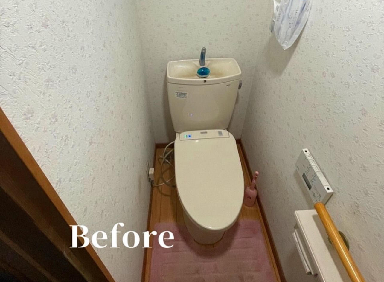 収納付き手洗いを別に設置し、高い機能性を備えたトイレになりました。 さらに便器の色と手洗いの陶器の色を合わせ、統一感のある空間になりました(^^)/