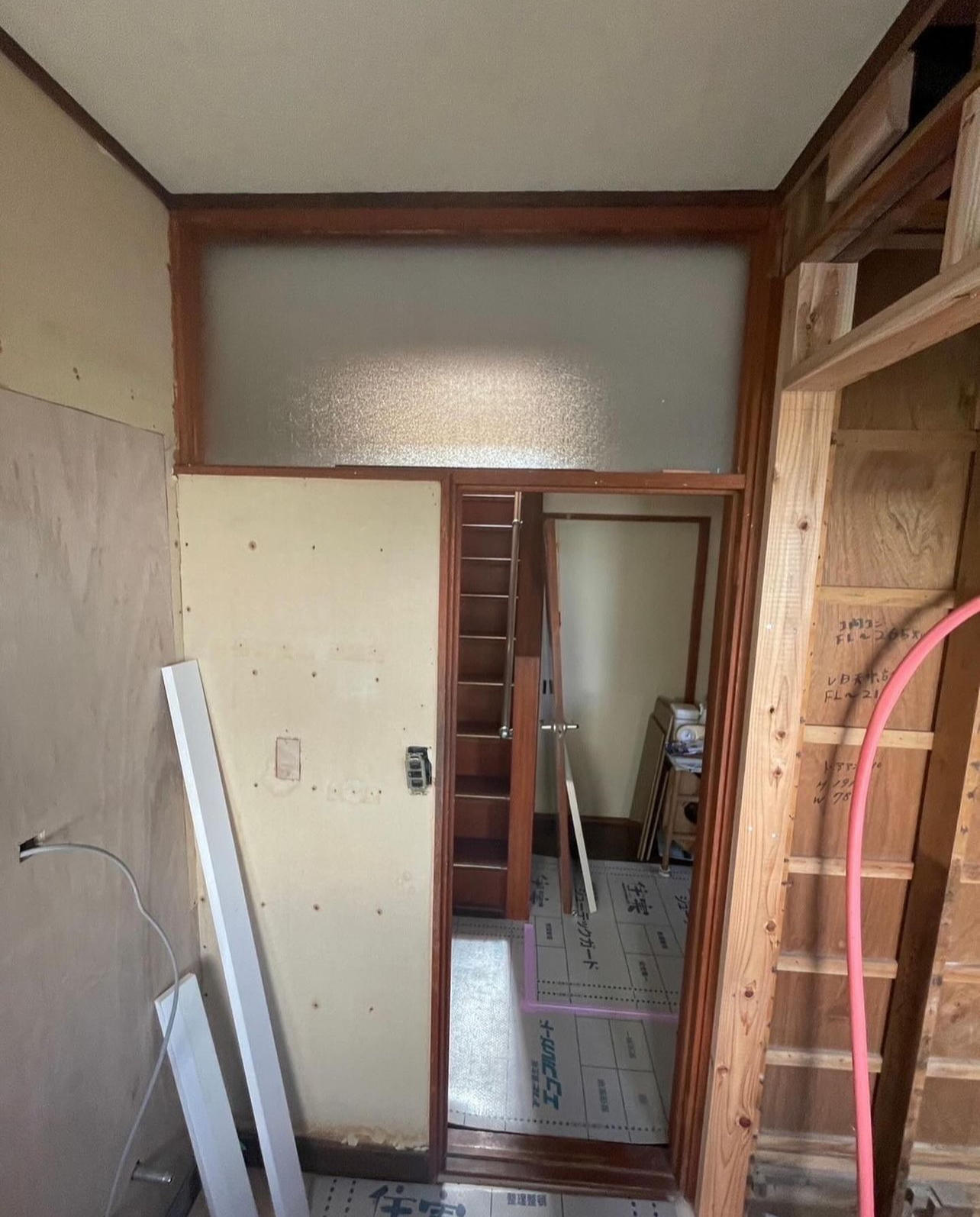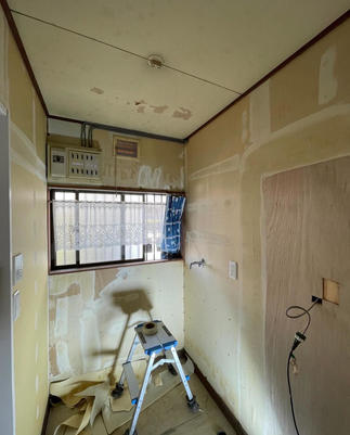 引き続きN様邸、洗面交換・クロス張替え作業です。
