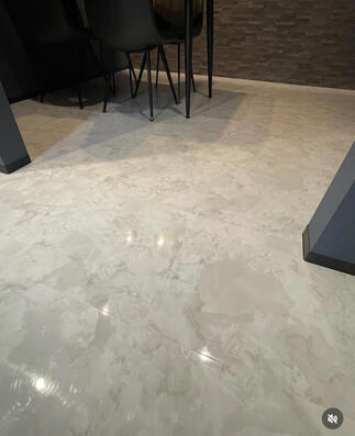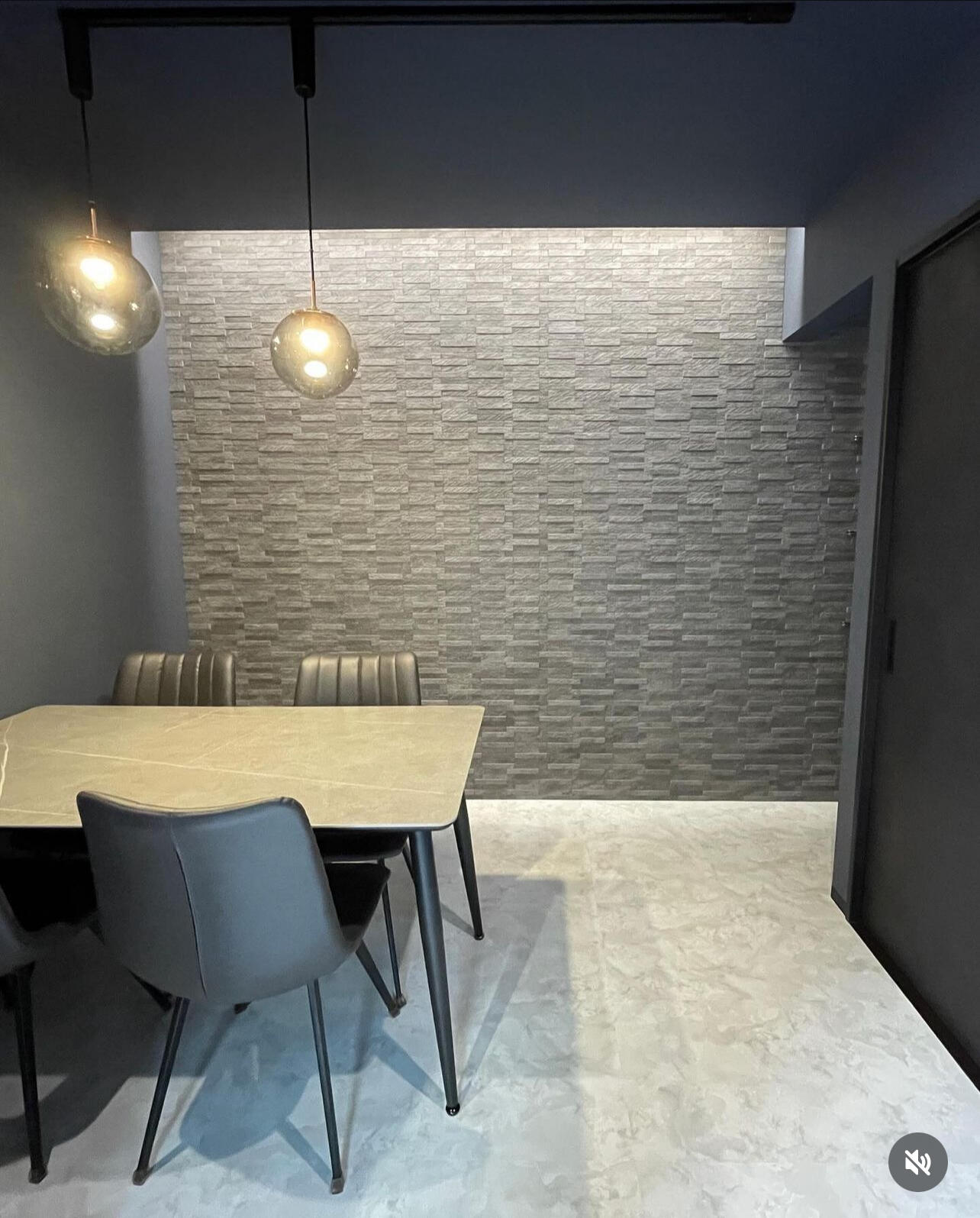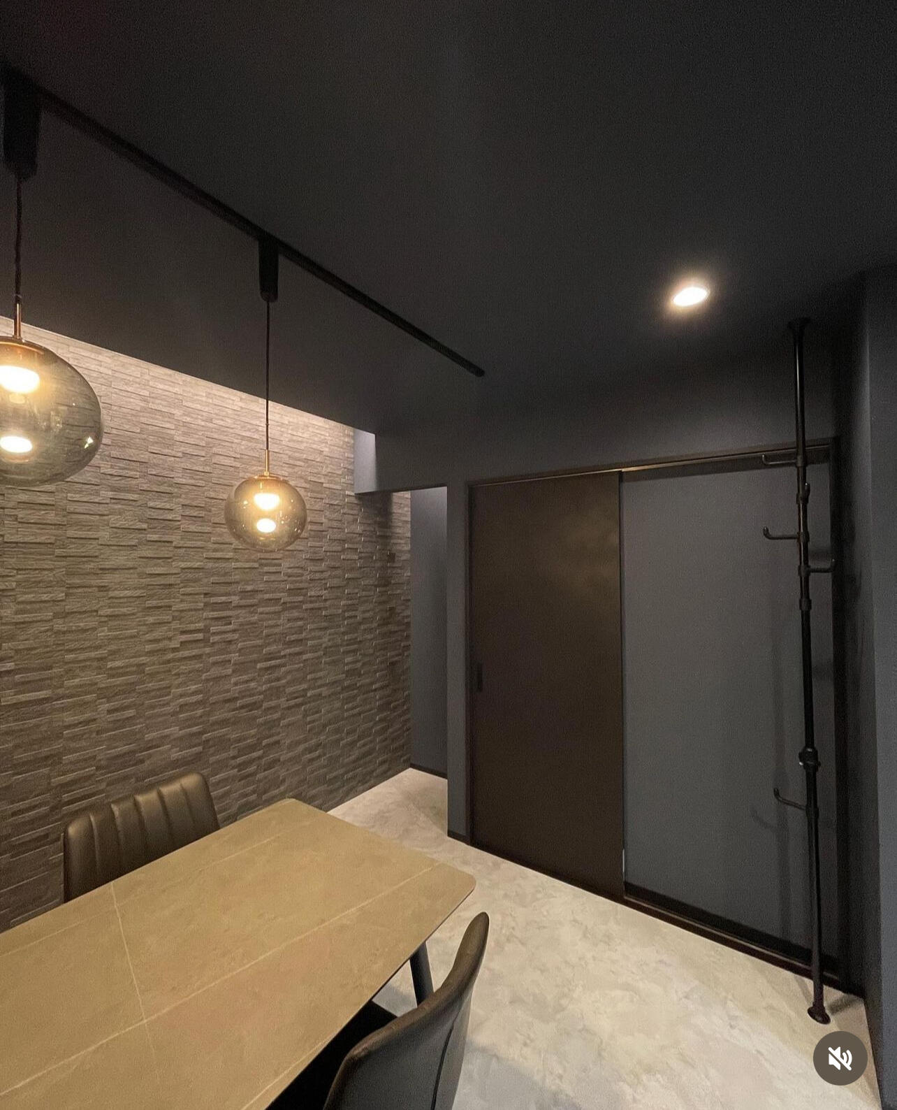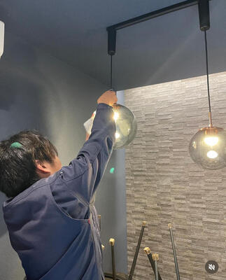 テーブルの上にレール照明で丸いガラスの照明を大きさ違いで2つ設置させて頂きました。