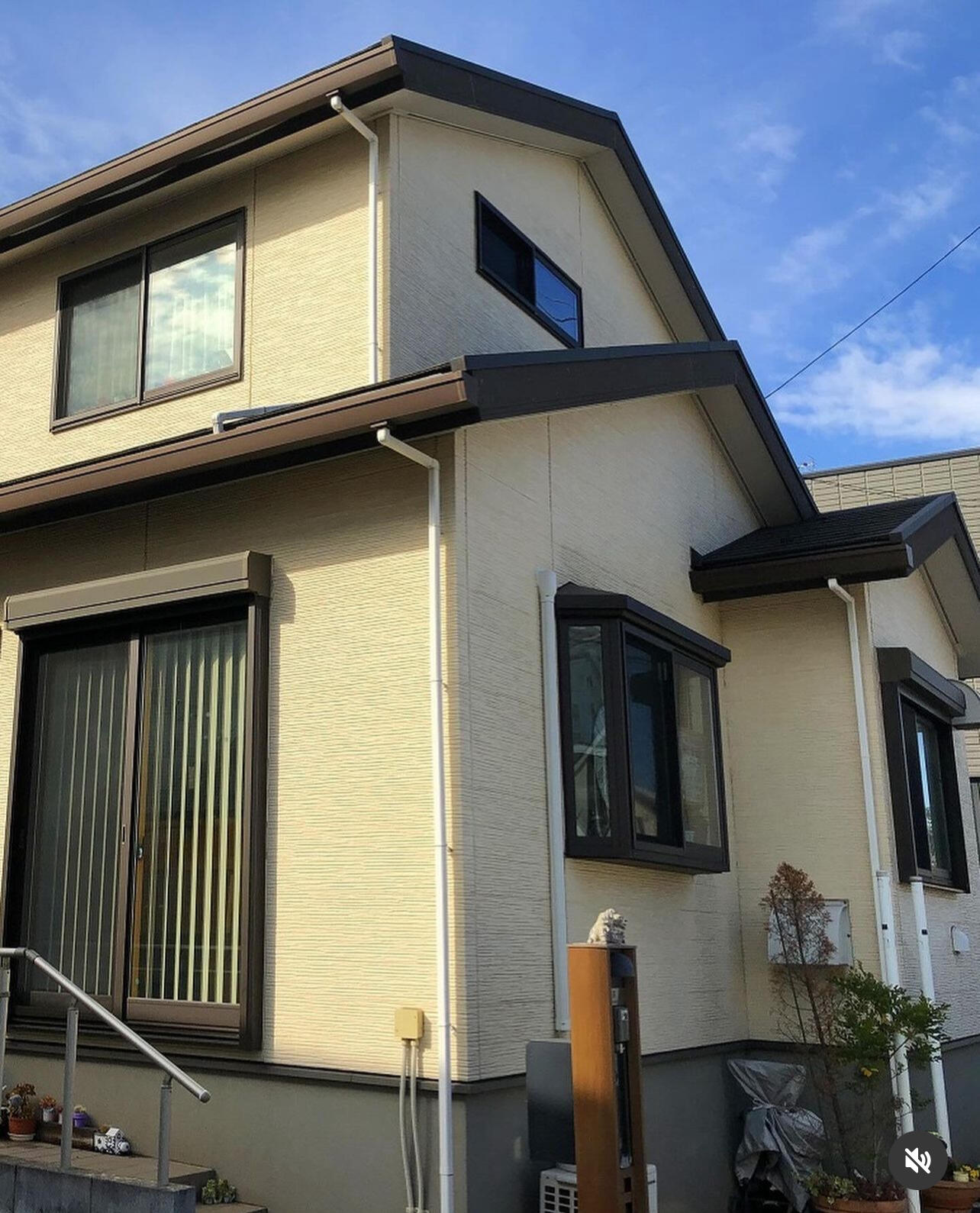 お客様より「そろそろ塗装をしたい!」とのご相談をいただきました。今回は、一階と二階で色を変えて2トーンにしたいというご要望に加え、換気扇の撤去に伴いフードを取り外し、その穴を塞いでほしいとのことでした。
