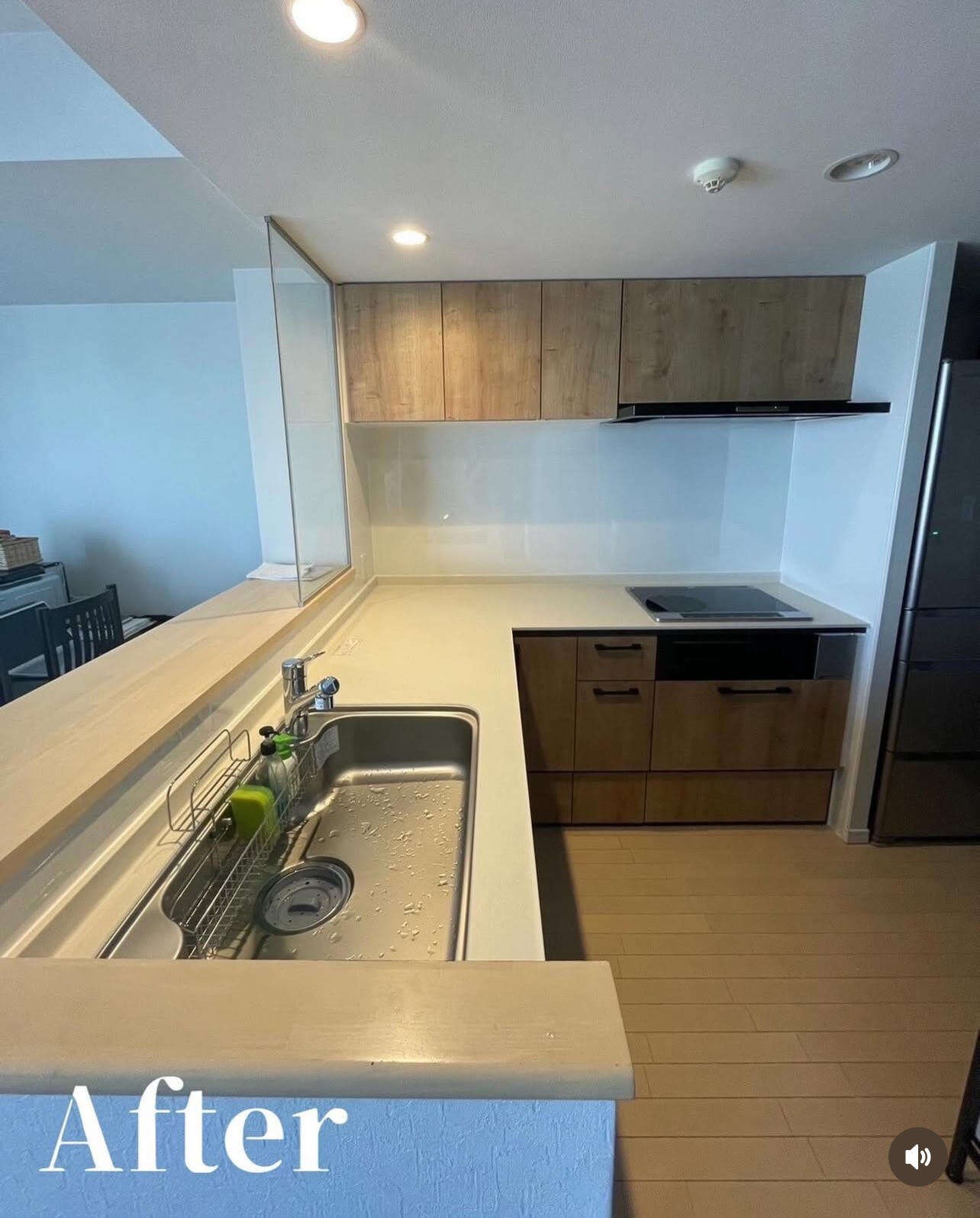 今回のリフォームで、I様のご希望に沿ったスタイリッシュで機能的なキッチンに仕上がりました。I様からは「とても満足しています」とのお言葉をいただき、大変嬉しく思います。